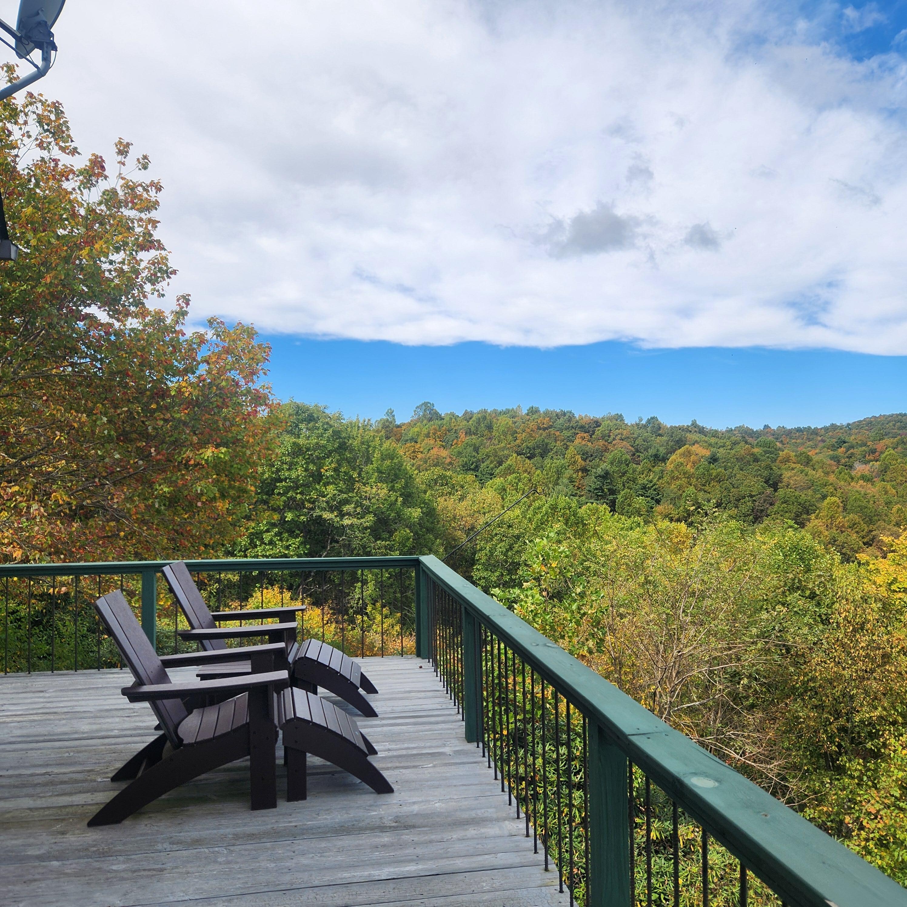 Immerse yourself in the deep peace and beauty of this area. Driving through the last section of road through the lush rhododendron passageway and arriving at the house with the beautiful backdrop of mountains and national forest immediately sets one's soul at rest. There is a strong sense of beauty and sanctity of nature surrounding and from within this house. It carries the feel of a mountain cabin with many of the comforts and coziness of a modern home. We enjoy sitting on the back deck (or, from the inside, the panoramic view living area) and absorbing and being humbled by the enveloping beauty of the mountains and nature. The shadowing on the mountains from passing clouds and change in light direction throughout the day, highlighting various ridges and contours, is amazing! We also enjoy being wrapped in the clouds from time to time. The elevation is ~3,700 feet, which makes it very comfortable in the summertime...when the rest of North Georgia is 85-90 degrees, it is 75 up here. The unique microclimate of this region creates a flora a special habitat. Each season brings its own splendor, as well as options for different activities. Flora and fauna come alive in spring, with full splendor. Summer offers the coolness and comfort of the altitude, and many surrounding hikes, waterfalls, sliding rocks and swimming holes. Fall brings the changing of the leaves and mountain town festivals. Winter offers unique Christmas shopping opportunities, snow tubing nearby, and Highlands has an outdoor ice rink that is open until early March. There are so many things to explore and immerse oneself in around here!