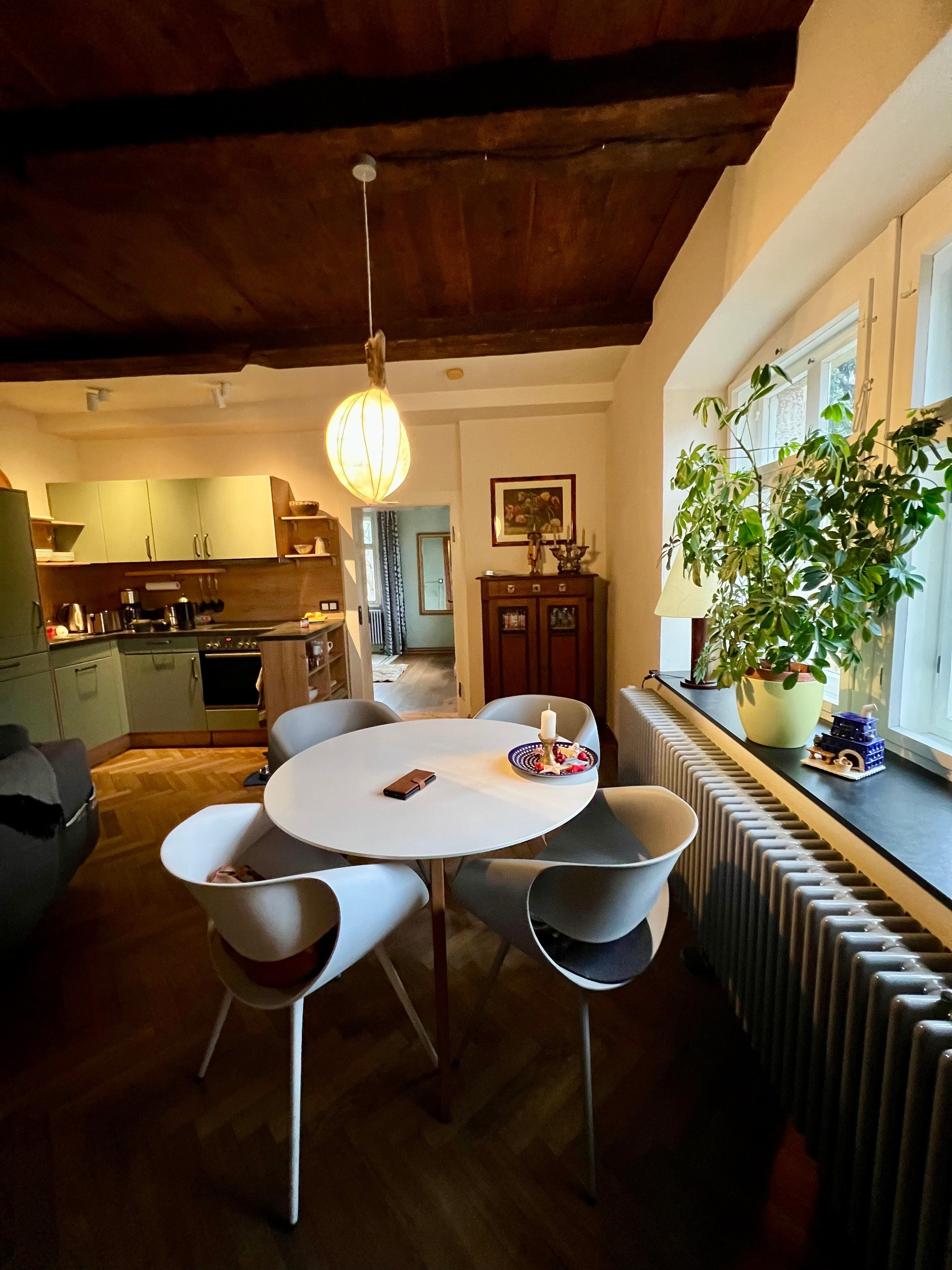 Die Lage, die schöne Einrichtung der Ferienwohnung (ein toller Mix aus Antiquitäten und modernen Möbeln), das herzliche Willkommen durch den Gastgeber, gute Matratzen und eine wunderschöne Umgebung haben uns einen wunderschönen Urlaub beschert. Es war sehr heiß, aber die dicken Wände des denkmalgeschützten Hauses haben für gute Temperaturen gesorgt. Wir haben uns sehr wohl gefühlt und auch die Nähe zum Wald war ideal für unseren Hund. Ein toller Urlaub!