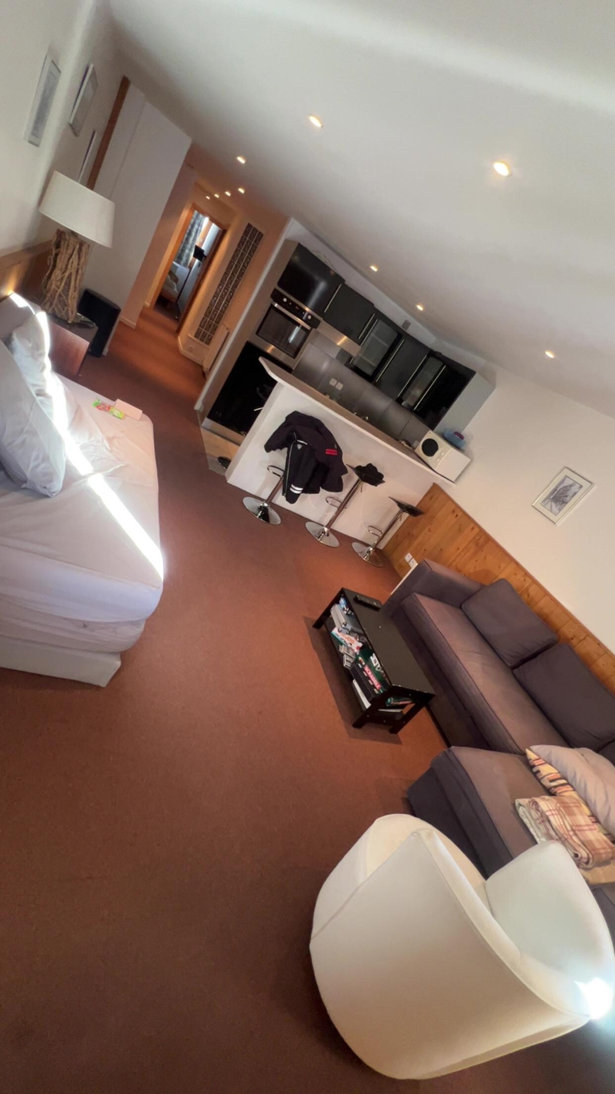 Le vaste séjour lumineux, décoré avec goût, s’ouvre sur une cuisine entièrement équipée à la fois fonctionnelle et conviviale. Un balcon généreux avec une vue panoramique sur les pistes et les sommets environnants complète ce décor idyllique, parfait pour profiter des premiers rayons de soleil ou admirer les couleurs du coucher du soleil sur les montagnes enneigées.