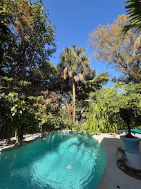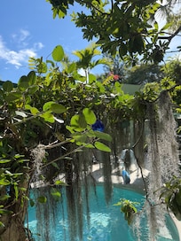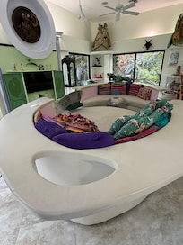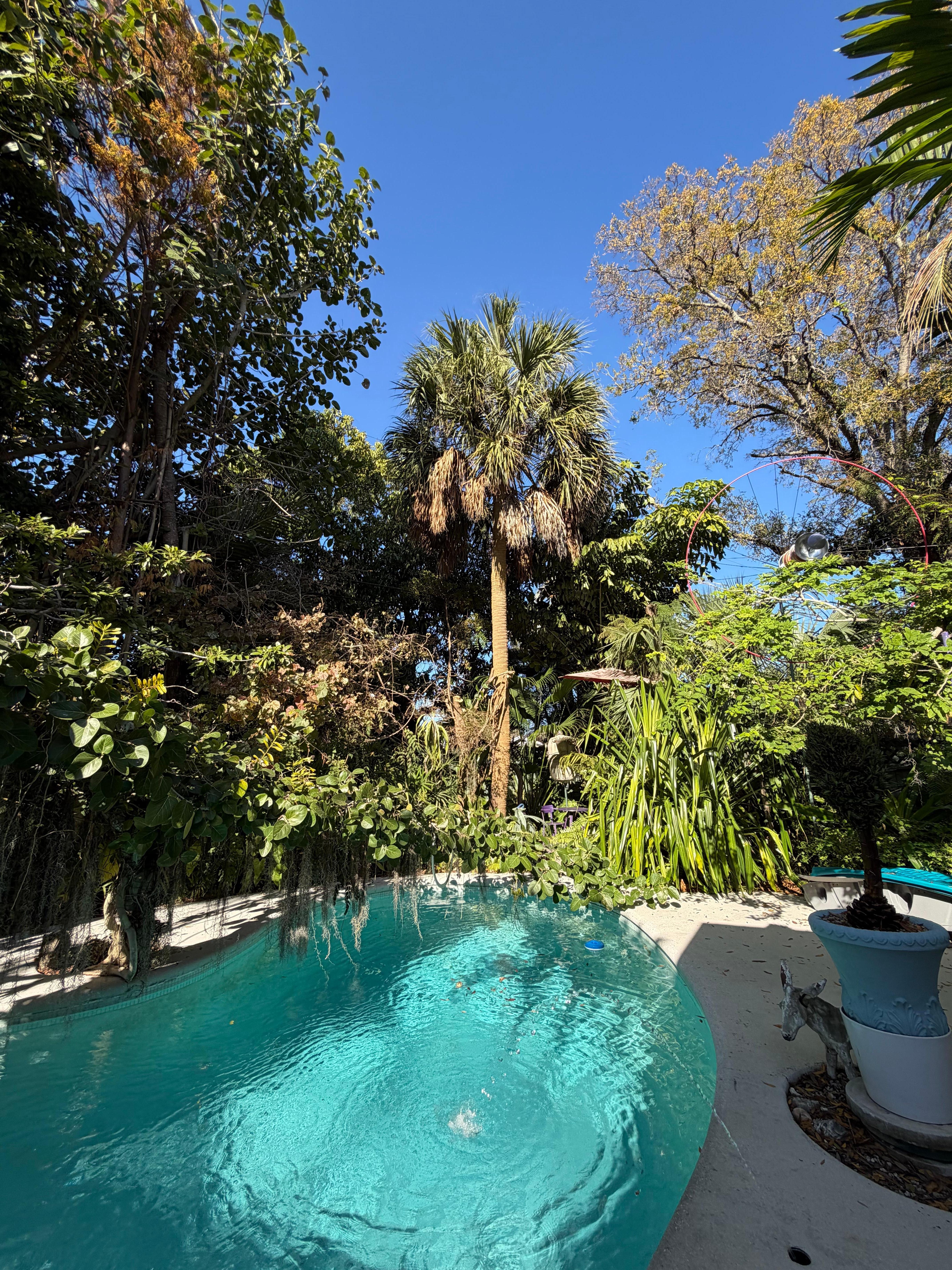 This is a TOTALLY ARTISTIC OASIS property like no other. The challenge for lifetime artist/designer Michael Jude Russo is to create and offer an ORGANIC AND ECO-FRIENDLY multifaceted home atmosphere. It's an experience you won't get anywhere else. Visitors (see the reviews) have appreciated the ARTFUL BLENDING of lush tropical pathways, tranquil fountains with streaming water and a well-maintained lagoon pool. The home interior features intriguing original art sculpture and furniture bathed in natural light. ”Each window view presents a painting of nature”. INSIDE AND OUT IT WILL SPARK YOUR SENSE OF CURIOSITY AND DISCOVERY.