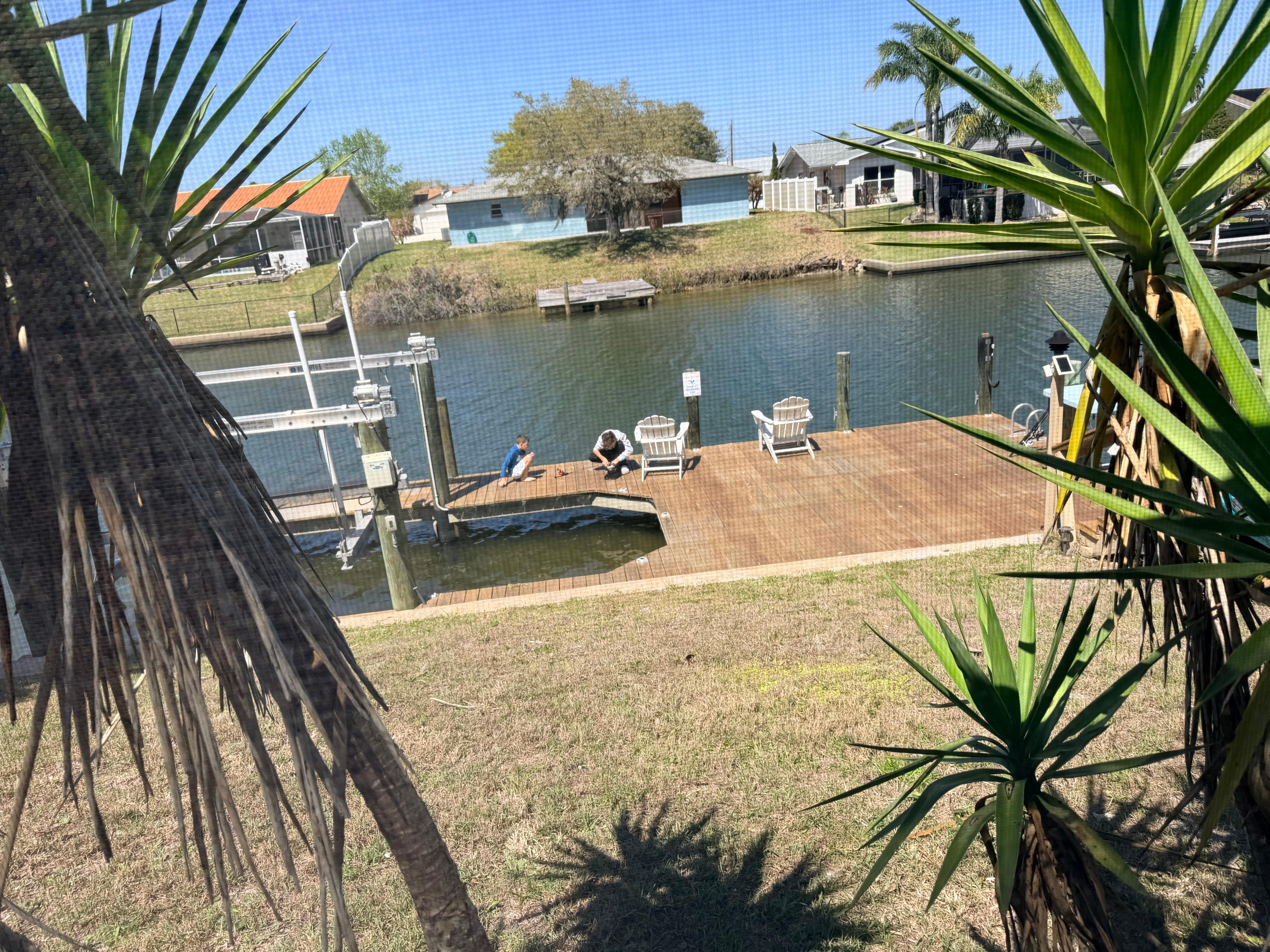 Amazing outdoor area with pool, Hot tub and 55" TV, deck on water, kayak, inflatable Paddle board. Watch Dolphins from the back yard.
