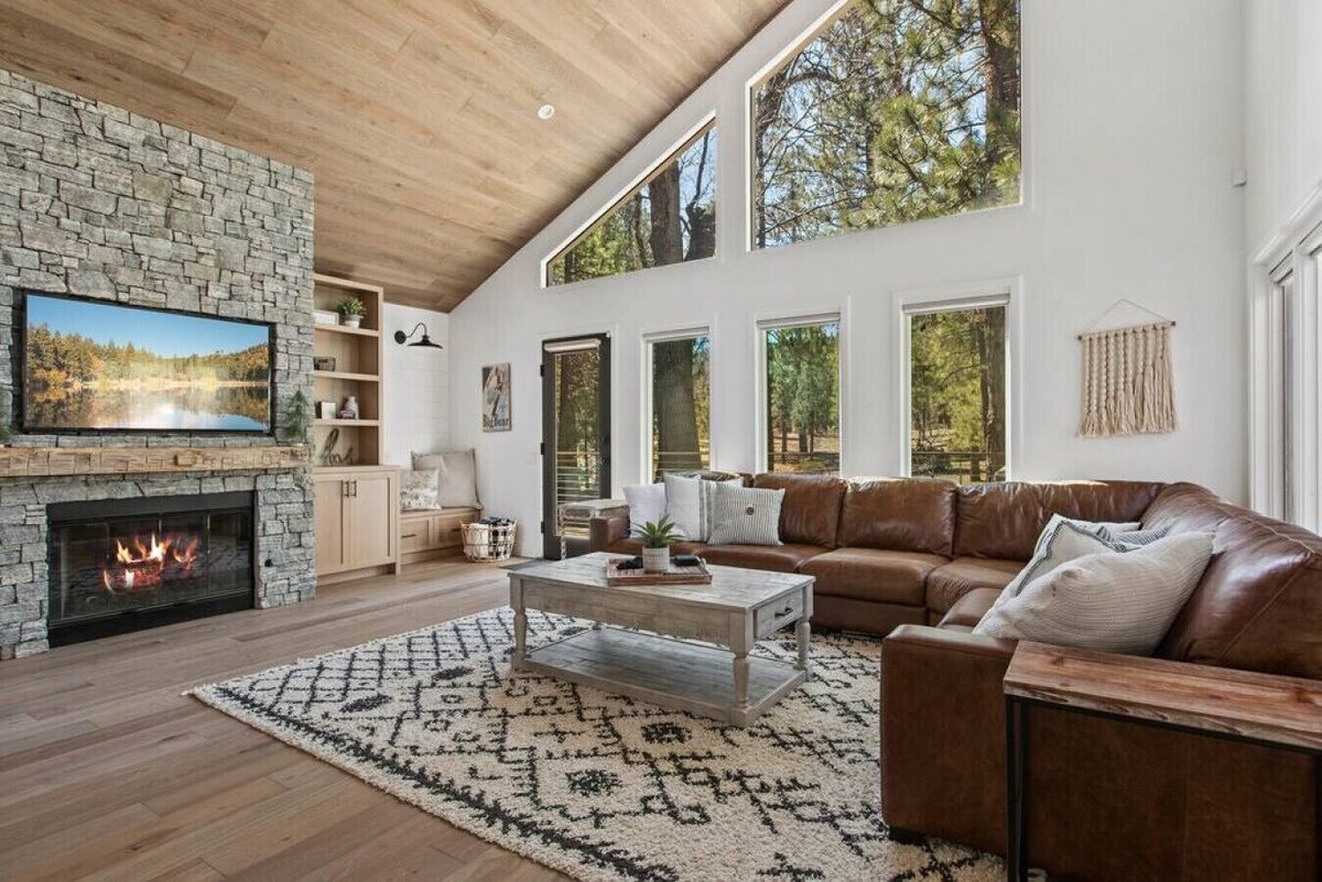 Come hide away in this Big Bear Chalet! This Tudor style full remodel offers views from almost every room. It is ideally located on a beautiful secluded side street directly between Bear Mountain and Snow Summit SKI AREAS. Vaulted ceilings and windows in the family room lead out to a private undeveloped reserve behind the home. Smell the pines from the deck of the large private backyard, complete with a BBQ and six-person hot tub as you relax after a day on the slopes. Modern, chic and rustic!