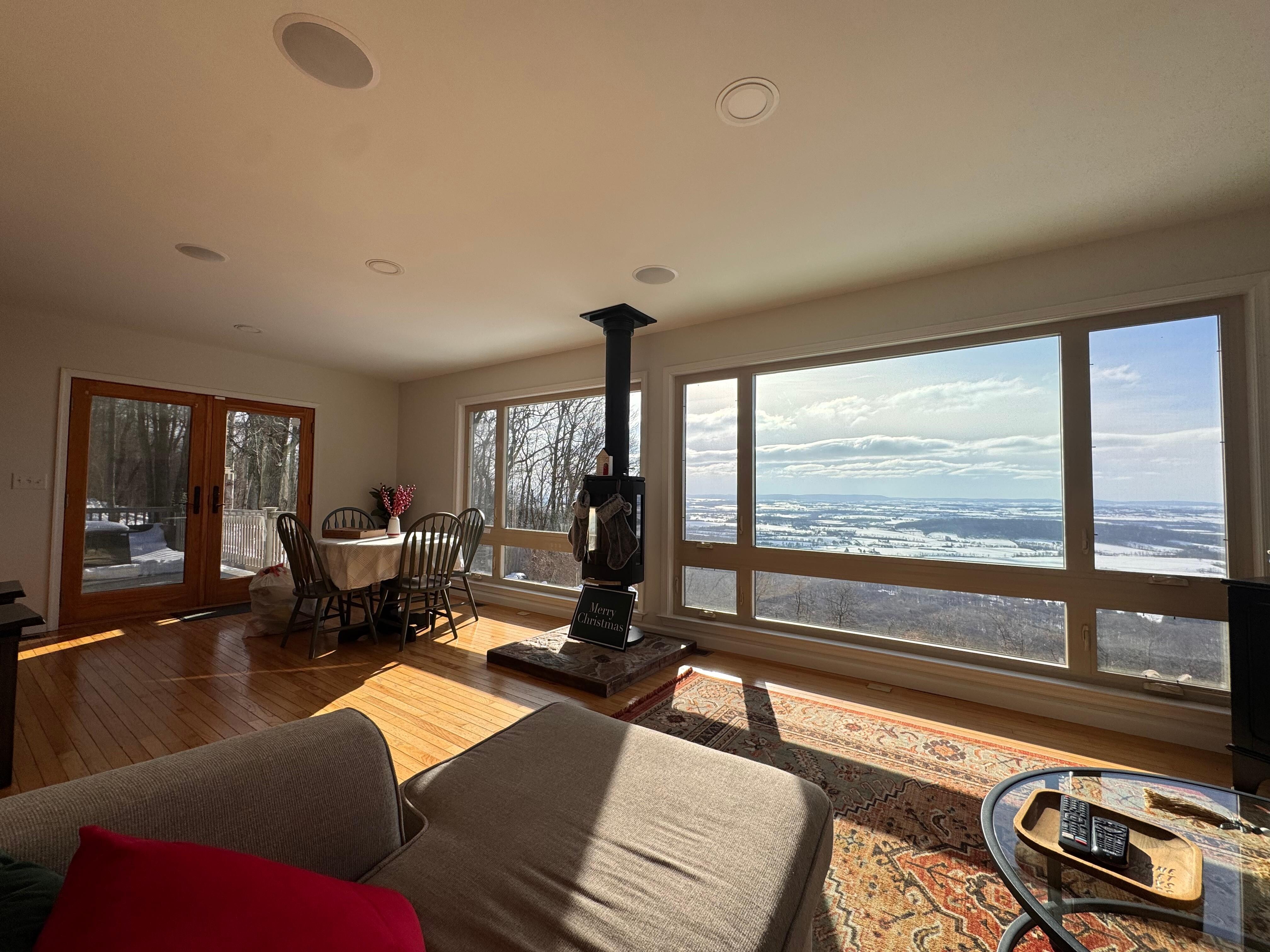 My wife and I were here for the weekend for a charity off-road event at Rausch Creek. The property is conveniently located about twenty minutes away. The house is beautiful! It is perfect for a couple looking to get away and relax. Both floors have large windows overlooking a spectacular view of the valley. The kitchen is well equipped and everything was spotless. We will be returning in the spring!