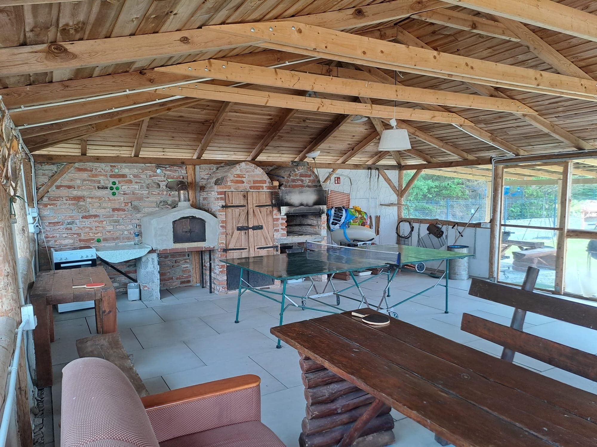 For the youngest guests we offer a playground with swings, slides and sandpit. We also have a badminton court, a ping-pong table and darts. The resort has a spacious gazebo with wood burning stove, grill, smokehouse and seating for more people. There is also the possibility to organize a campfire.