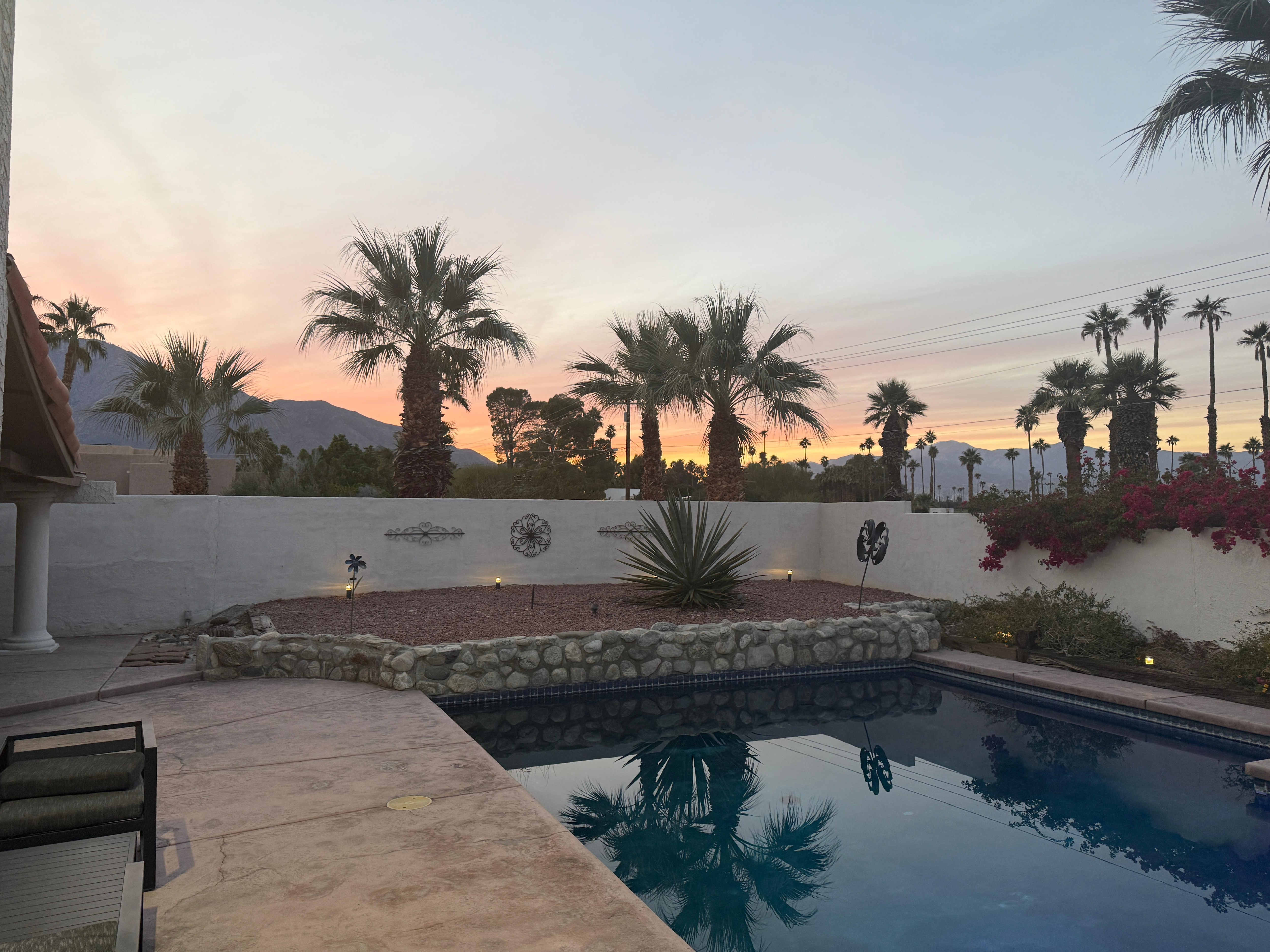 Everything was perfect. A spacious living room for gatherings. Well appointed kitchen with all the appliances you could possibly need. The beautiful private setting was so inviting and comfortable. We did not elect to have the pool heated but we thoroughly enjoyed the hot tub. The property is well maintained and very close to restaurants & shopping in downtown Palm Springs. It totally exceeded our expectations!