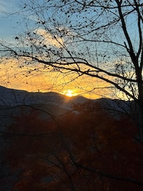 Go outside on the deck to enjoy both ends of your day with a sweeping mountain view. Outside you can enjoy grilling up your favorite meal or relaxing by the fire pit. Great place to have coffee or a cocktail.