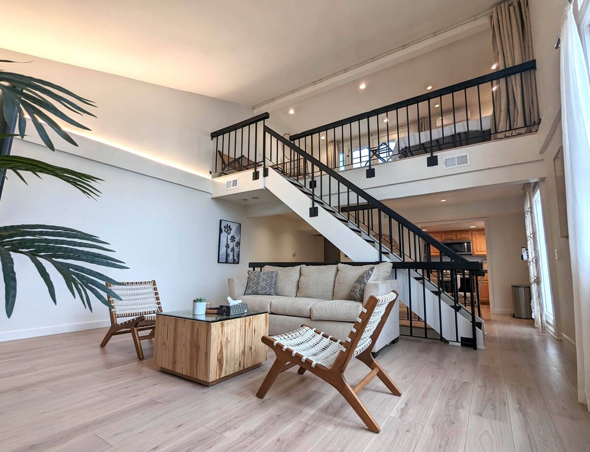 Newly renovated Boho-inspired beach home, in a tri-level 1600 sq ft condo, including a master bedroom suite, second bedroom, loft, kitchen, laundry area, living & dining rooms, and a relaxing rooftop patio. The space is light 'n bright with a coastal vibe, perfect for your beach getaway. Everything was thoughtfully designed and selected. Just cross Ocean Blvd and you're right at the beach. One large parking included to avoid the beach-side parking chaos. The loft and living room both have big 4k TVs, perfect for sports/movie night after a beach day with your kids.