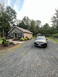 This picturesque property gives you the true feel of country living, yet minutes away from all that the Poconos has to offer. No crowds, just wake up to the deer and rabbits that frequent the property. Our completely renovated, cottage sits on a beautiful 32 acre farm. An amazing place for a photo shoot. Minutes from Camelback Resort, Great Wolf Lodge, Heckman's Orchard, Mount Airy Casino, Crossing Outlets, Mountain Springs Lake Resort, Restaurants, Hiking and much more. This is a one- of- a-kind find in the Poconos. The yard includes, gazebo, outdoor dinning, grill (propane included) & propane firepit. There is a hammock to rest on and relax in the shade with your favorite book or RELAX on the front porch and listen to the stream across the road. There is a shed to store your ski gear or bikes. Kitchen has all new SS appliances. Refrigerator has icemaker. Two large bedrooms both with queen beds, linens are included. Full size washer and dryer. Self inflating twin air mattress can be placed in the bedroom upon request for additional guests at no additional charge. With air mattress the unit sleeps 5. You will not find a more ideal location in all of the Poconos. We also supply coffee/tea, (Keurig), towels, laundry detergent, cleaning products, & a fully stocked kitchen. If you're looking for a peaceful & relaxing getaway .. THIS HOUSE WILL NOT DISAPPOINT! SORRY NO PETS, PARTIES OR ANYONE UNDER THE AGE OF 21.