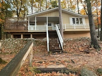 Enjoy a comfortable stay in this four season, lake front vacation home. This home has all the amenities of home on the inside, while being located on a beautiful scenic wooded lot with a deck overlooking 150 feet of shoreline on Lake Arrowhead. There is a 8 person Hot Tub located on the outside deck overlooking the lake which is a perfect retreat for spring, summer, fall or winter!