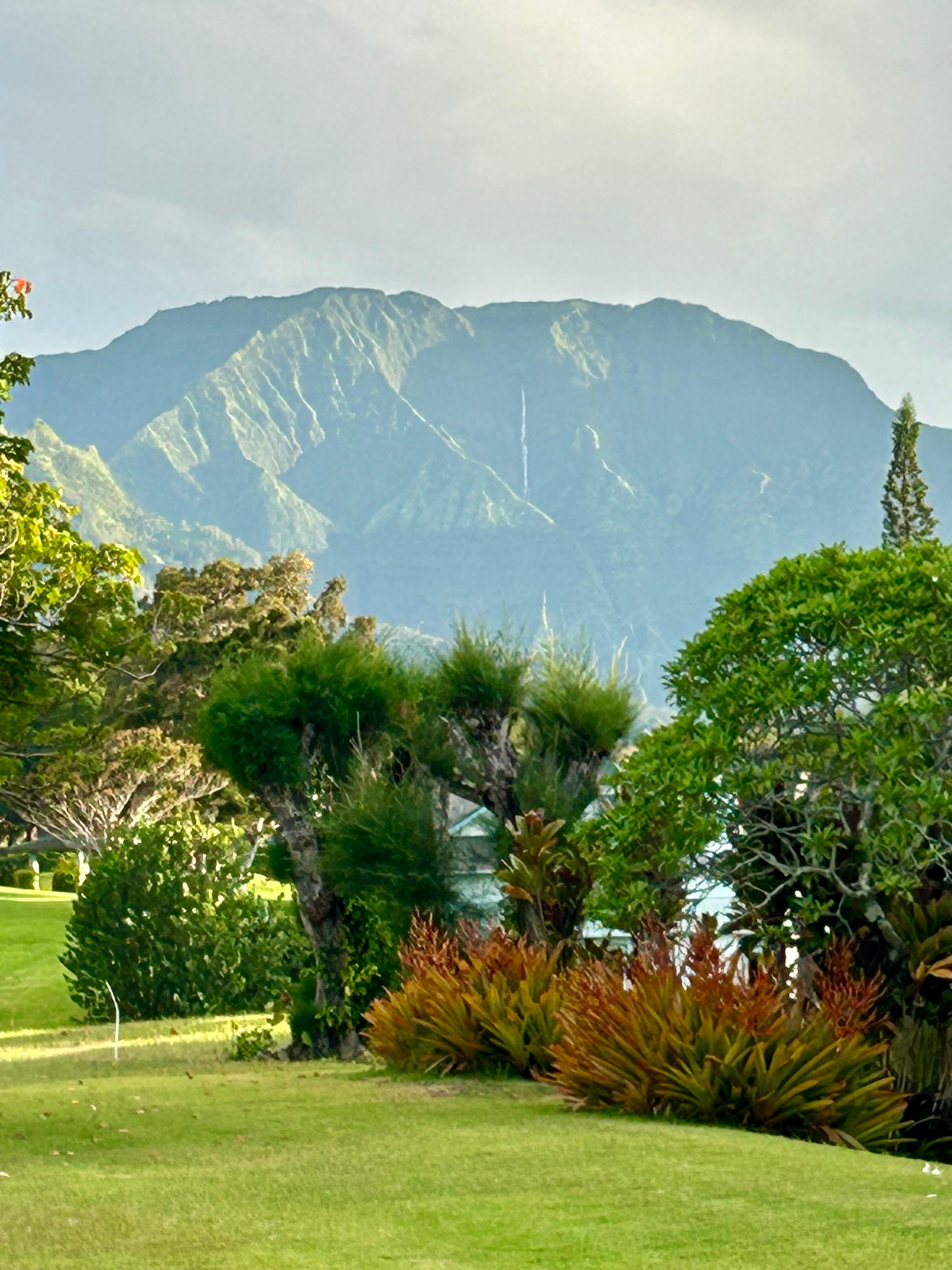 Or we pack up our insulated backpacks with enough goodies to last a full day at the beach, for playing in the surf, paddle boarding or just enjoying the beauty that embraces you. Kids, dogs, adults frolicking in the bay, watching the others strolling along the old Hanalei Pier(2.1 miles), taking photos, kids jumping off into the bay, laughter and sounds of excitement abound. Then you look up to this majestic mountain where the crown is always hiding in the cloud, with white ribbons of falls cascading down, against green velvet. You just sit back take a deep breath and say, 'Wow, I am living my dream!'