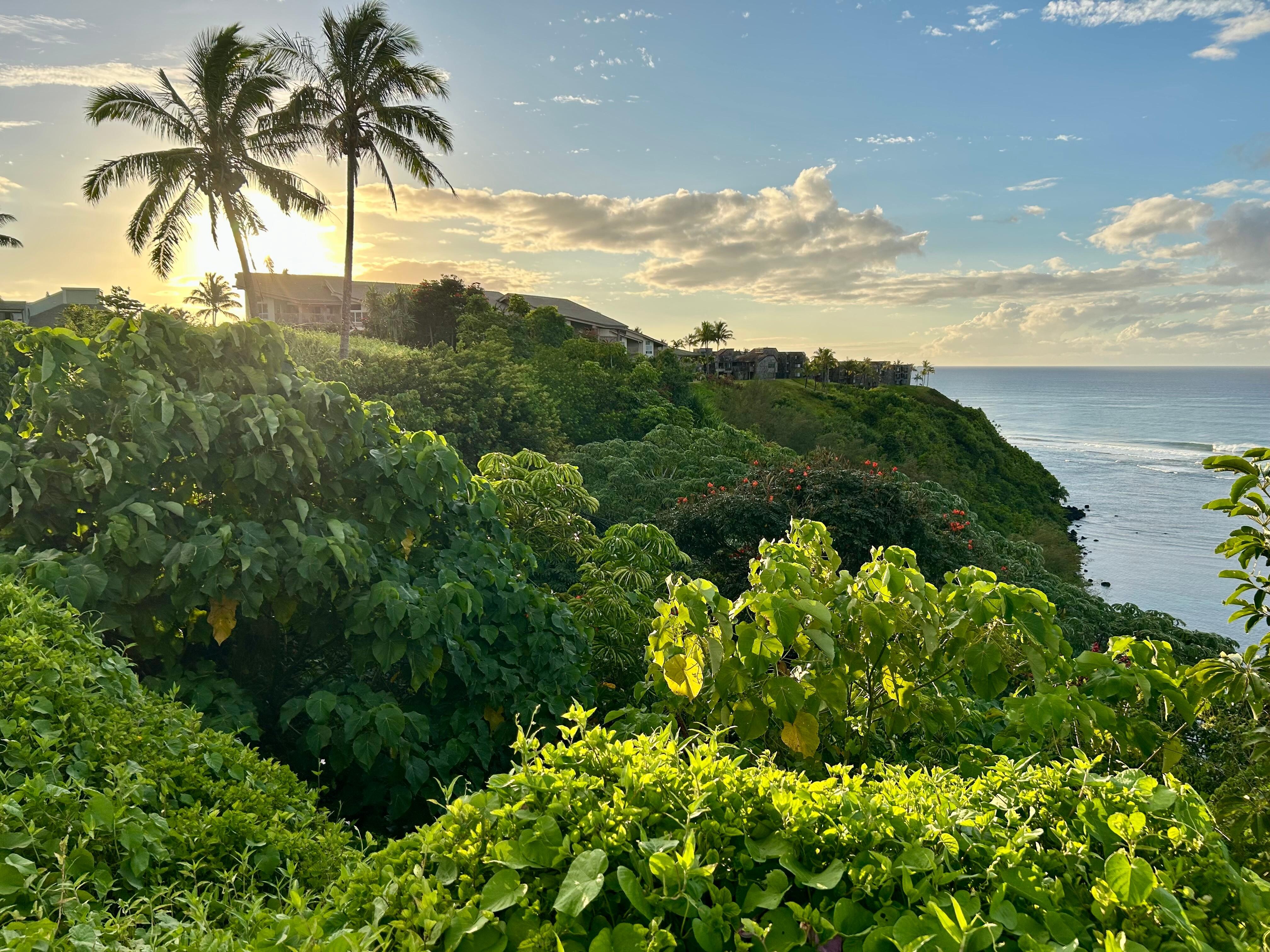 You awake to catch the awesome sunrise, while sitting on the lanai with your cup of freshly brewed local coffee. Contemplating what adventures will we explore today. We start with a stroll along Hanalei Bay for our morning walk, find our favorite cafe's for breakfast or grab some yummy fruit from the local Farmer's Market, to eat at the condo. I also pick up freshly cut Tropical Flowers at the Farmer's Market, to add to all the Plumeria fragrance that embrace our condo. Perhaps some golf today? Snorkel at Ke'e Beach at the end of the road?