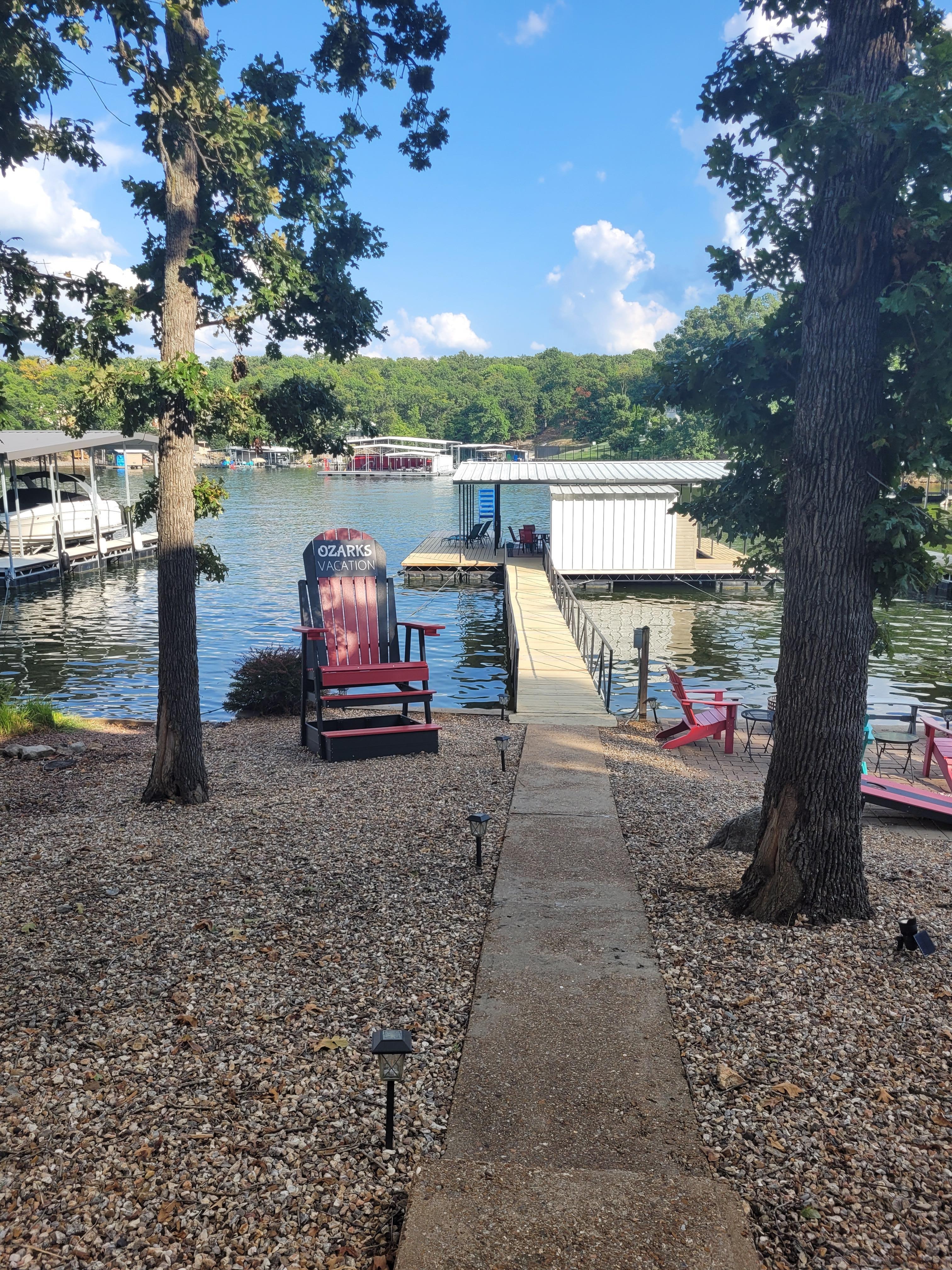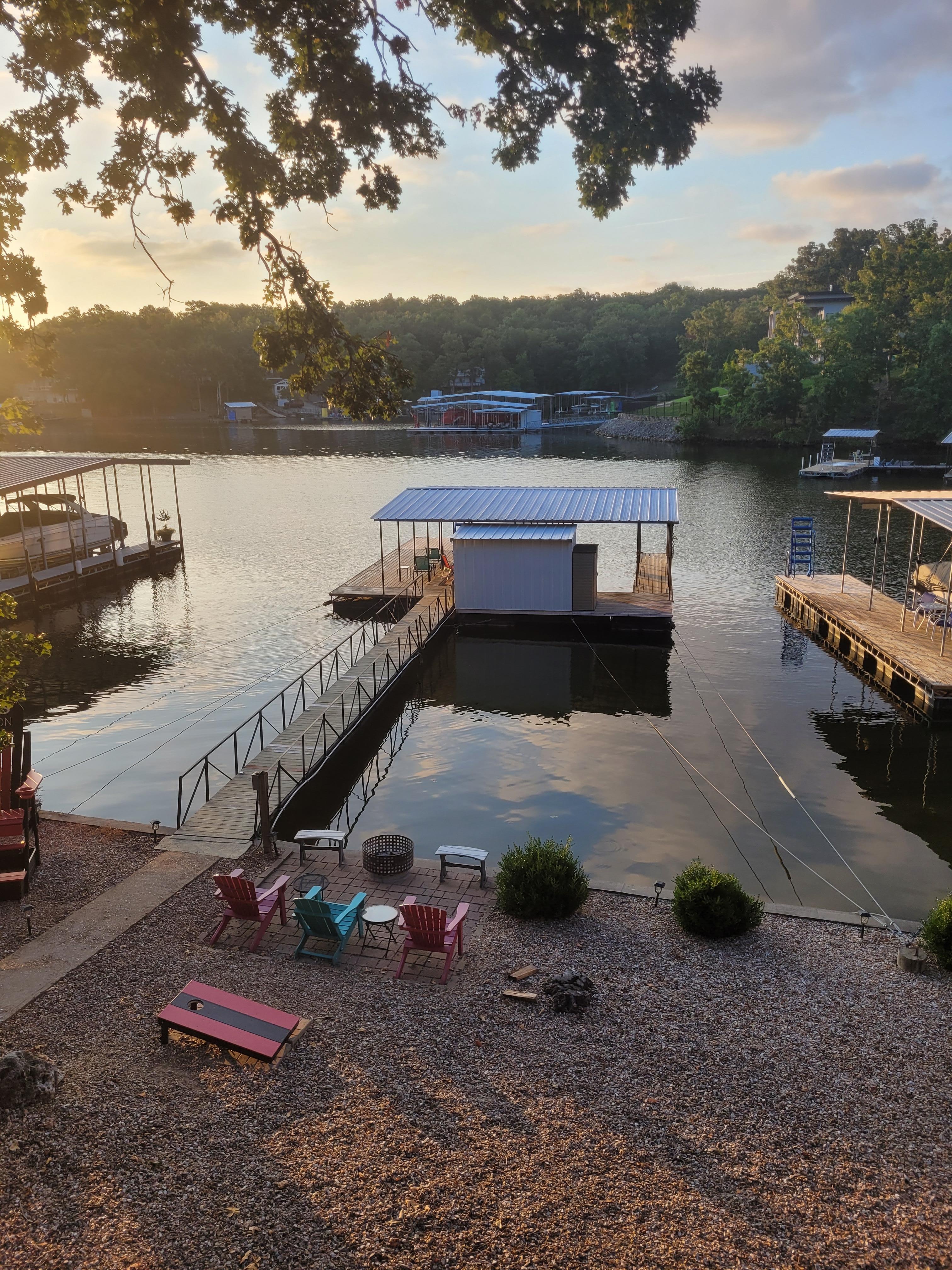 Fantastic location for families to enjoy everything the Lake of the Ozarks has to offer BOTH ON and OFF the water! The property is at mile marker 20 in a quiet, protected cove where you can safely swim, kayak, and fish. We are just minutes from the main channel by boat & close to Redhead Lakeside Grill & Yacht Club, Shorty Pants, Margaritaville, & Dog Days Restaurants. This is the perfect vacation spot to enjoy water sports, fishing, hiking and exploring in the nearby parks & caves. With easy access to HWY 54, its just a short drive to restaurants, shopping, amusement parks & more!