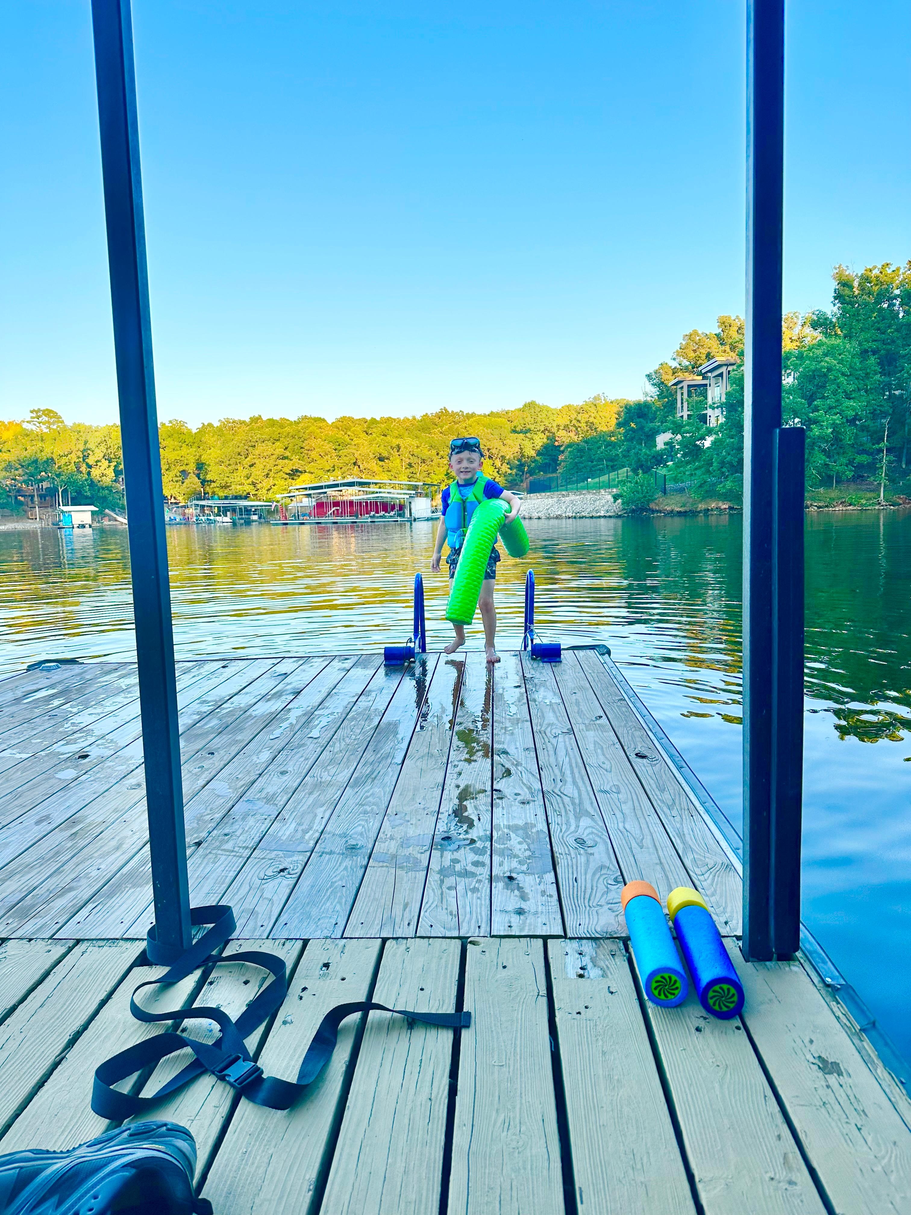 Bring the Boat! You will have access to a Private Dock with 10’ X 26’ Slip and 10' X 36’ Swim Platform & Ladder. Paddle Boat, Two Kayaks, Floating Noodles & a Lilypad is available to you! Great Fishing off the Dock too- fishing poles included!