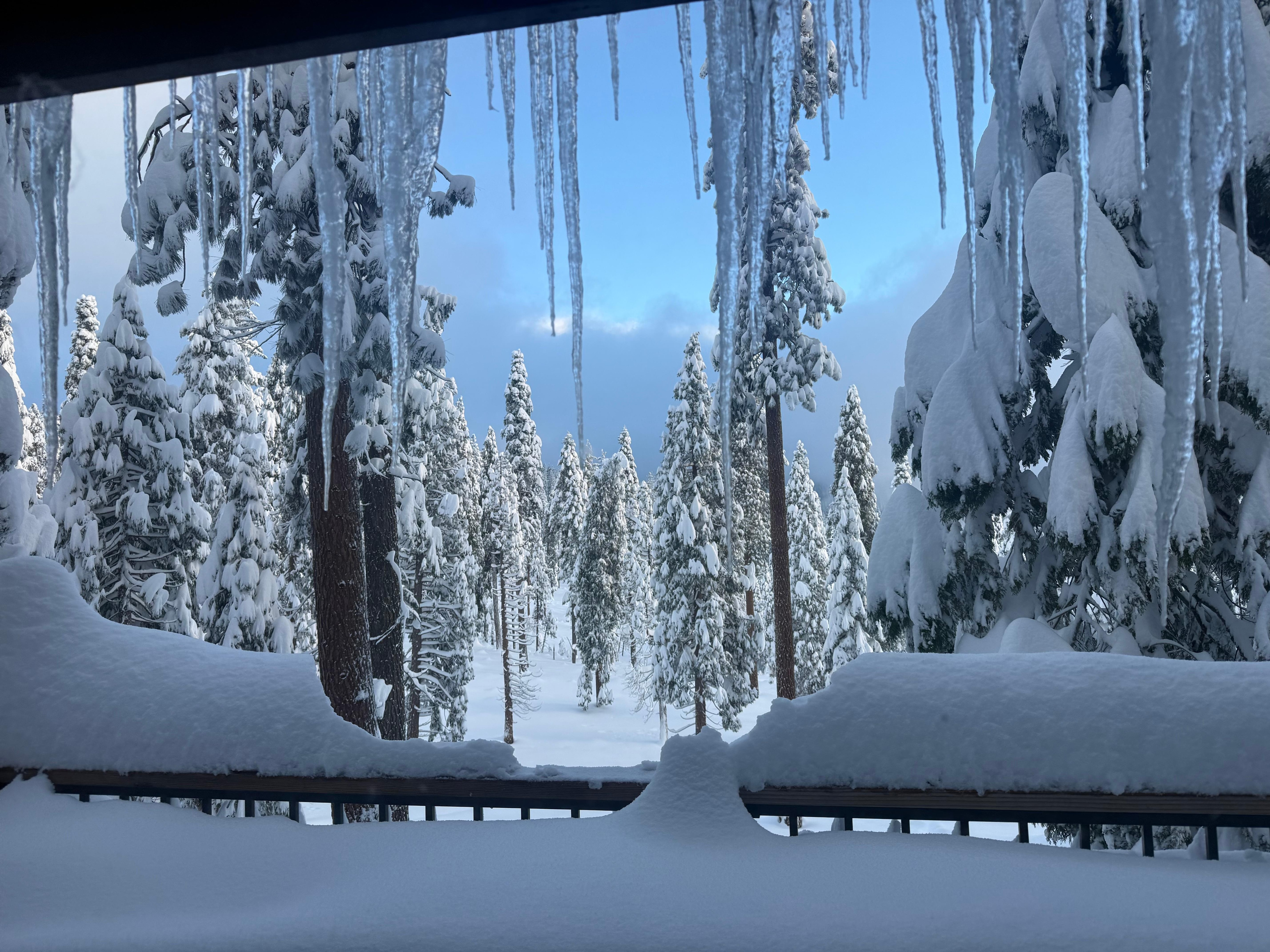 The sloped backyard is perfect for sledding. Every snow season, families staying at the cabin have commented that they prefer to build a sled run going down the backyard slope rather than pile in the car and head up Hwy-4 where the crowds gather to play in the snow. From the cabin, you can sit by the fire and drink coffee while watching the kids play in the snow from the living room window. There is a master bedroom balcony that provides even better views.