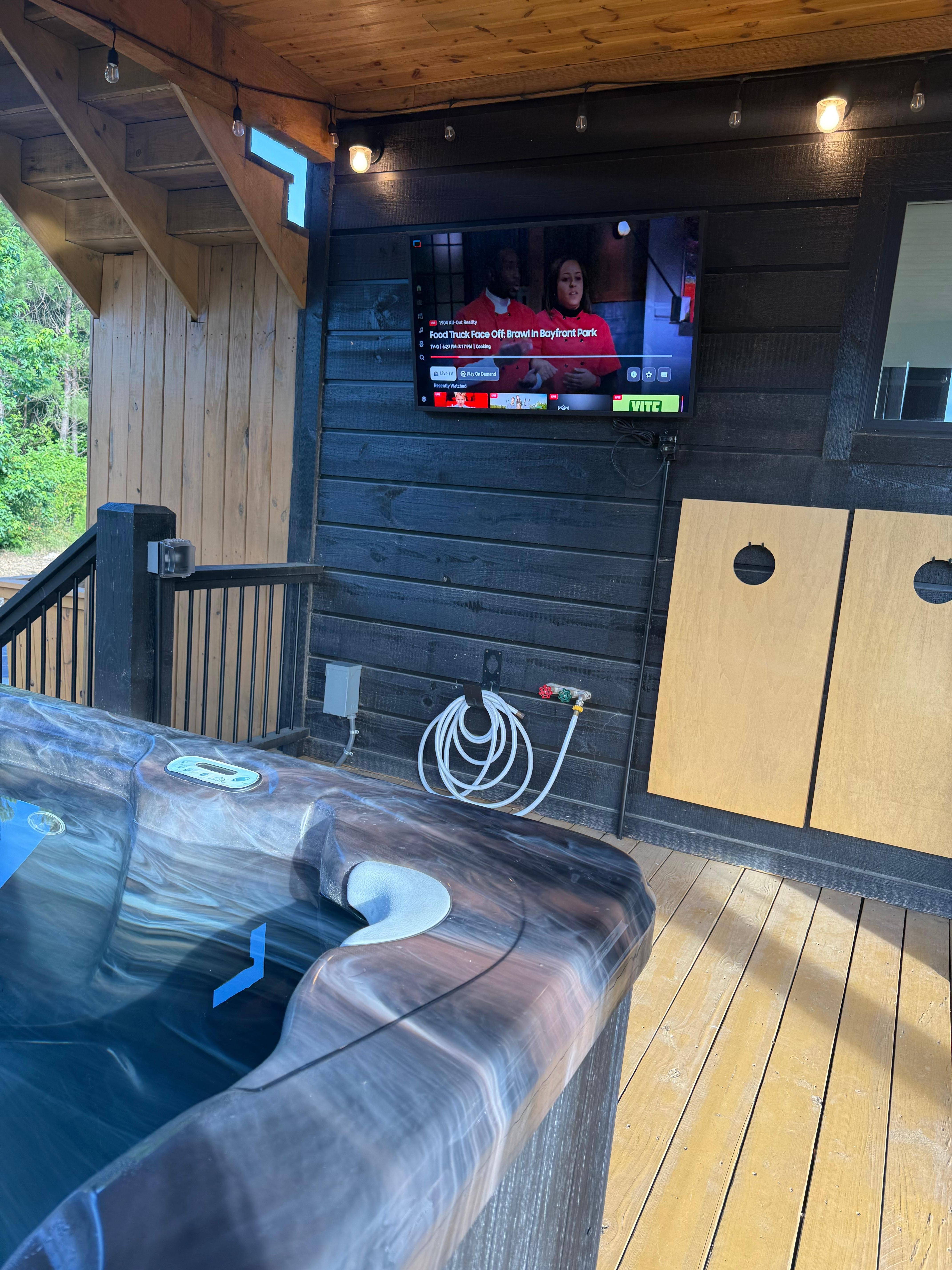 💦 Hot tub with privacy shade & mounted outdoor TV