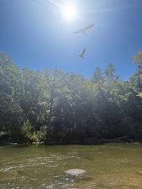 The true highlight of this property is the incredible outdoor living space. Multiple decks overlook the river, including two river-facing decks, one complete with a hot tub, offering endless spots to relax and take in the views. Tucked away on a private road shared by only a handful of homes, the setting is peaceful, secluded, and surrounded by nature. Expect frequent visits from deer and geese, and enjoy tubing or kayaking on the river during the warmer months. If you’re craving a tranquil nature retreat, this is it!