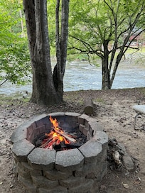 Wait until you experience this 2 bed/2 bath rustic cabin on a quiet lane surrounded by nature and just 50 ft. from the gentle rustling sounds of the Coosawattee River flowing right by. This home is equipped for the ultimate family getaway! Multiple outdoor seating areas, hot tub, charcoal grill, well-equipped kitchen, vaulted ceilings, game cabinet for rainy days, and excellent Wifi for working remotely (weekly and monthly discounts). Slow down, breathe and enjoy the beautiful scenery!