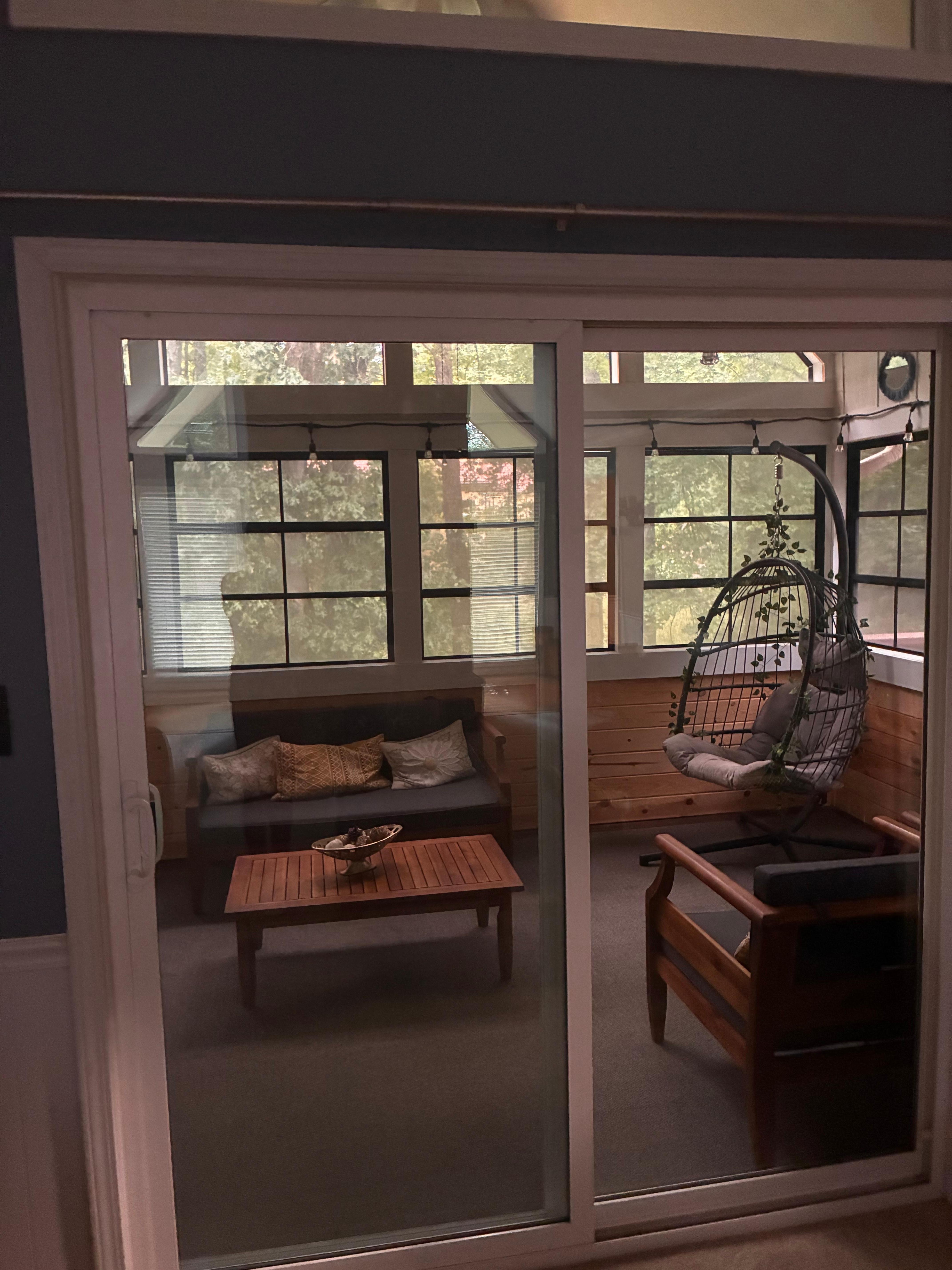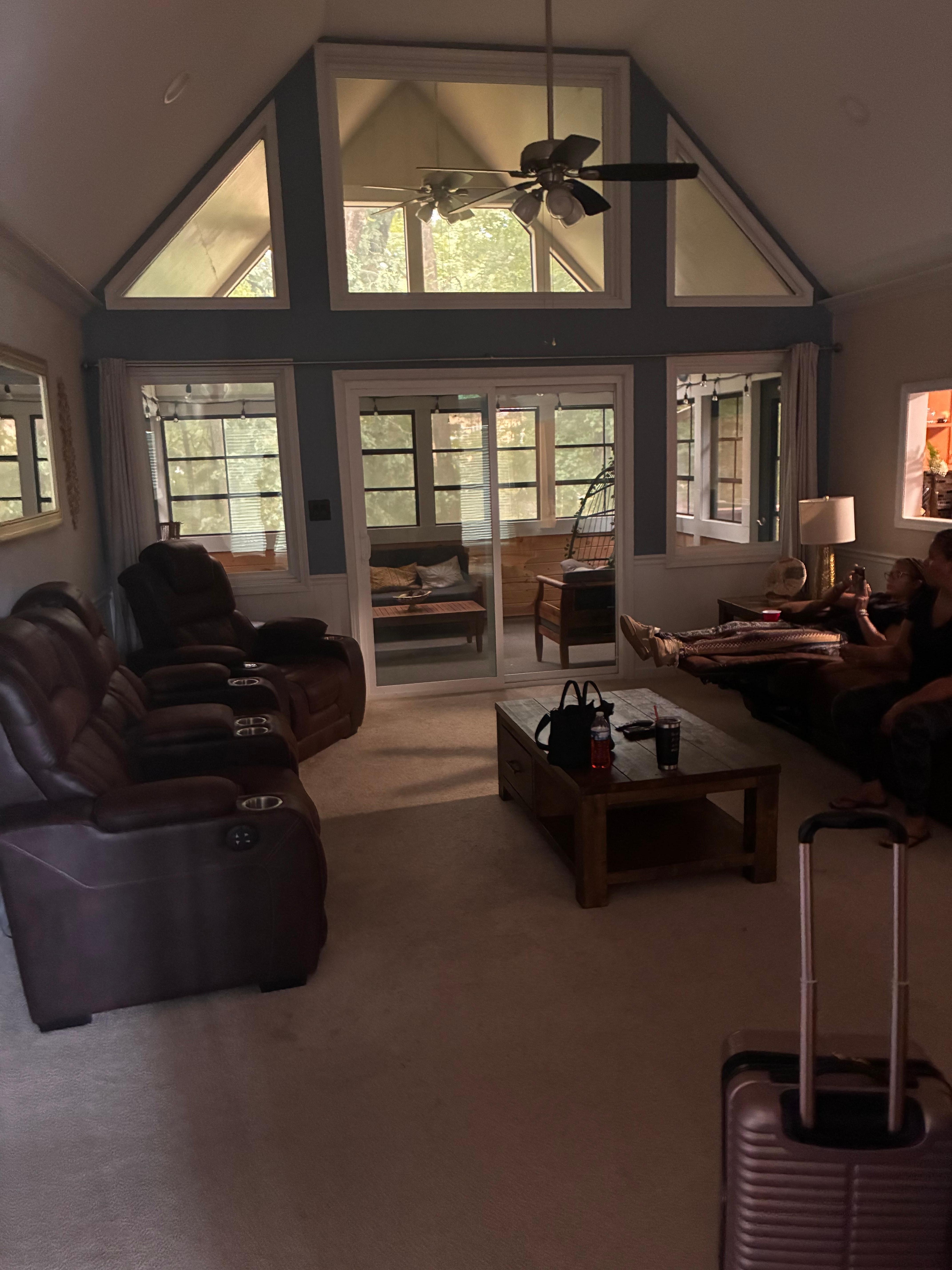 Sun room overlooking creek at back of the house and plenty of sitting space.