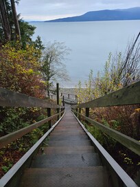 BEACH ACCESS: Across the front lawn, a stairway leads to a beach deck and the beach. 99% of the beach on Lummi Island is private and accessible only via a resident's access. During low tide one can easily walk the beach for a mile or more in a either direction. The beach is fantastic for seeing starfish, fishing floats, agates, driftwood, sea otters, bald eagles, sea glass, shells and an occasional orca whale.