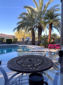 Evenings will be quiet and peaceful as you enjoy your backyard pool and hot tub at sunset while grilling your favorite foods.