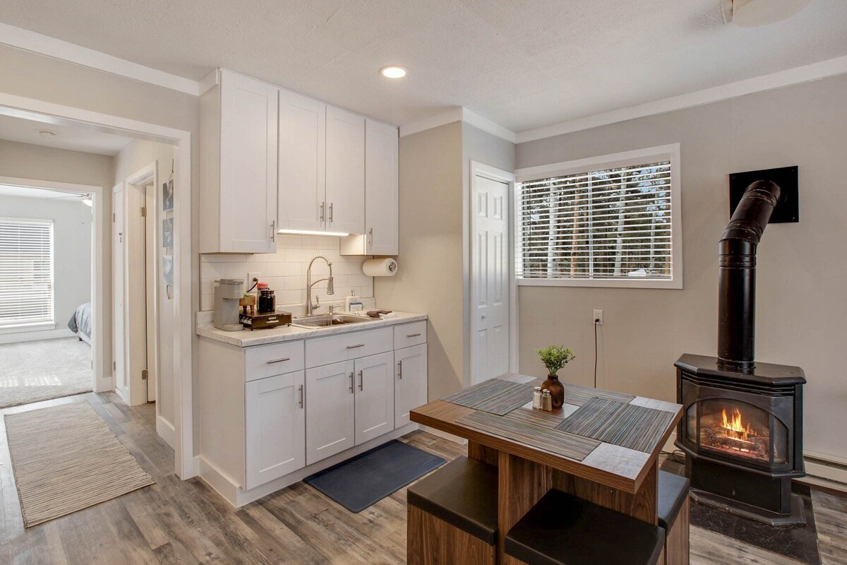 This little gem is in the heart of Woodland Park. This is ideal retires, out of state work assignment or remote working situation. This little cottage is centrally located. You can walk across the street and enjoy fresh veggies and breads at the farmers market, or just play with your grand kids, at the memorial park or hop in the car and head out to Pikes Peak Highway, Garden of the Gods, Mueller State Park, 11 Mile Canyon, Platte River fishing, Manitou springs, or Breckenridge. Or if you just want a relaxing stay away, walk to very close coffee shops, restaurants, and retail shops. Or take a nap in the hammock, have a BBQ, play board games on the patio set in the back yard, or roast marshmallows around the fire. You will just love getting away to the pines !