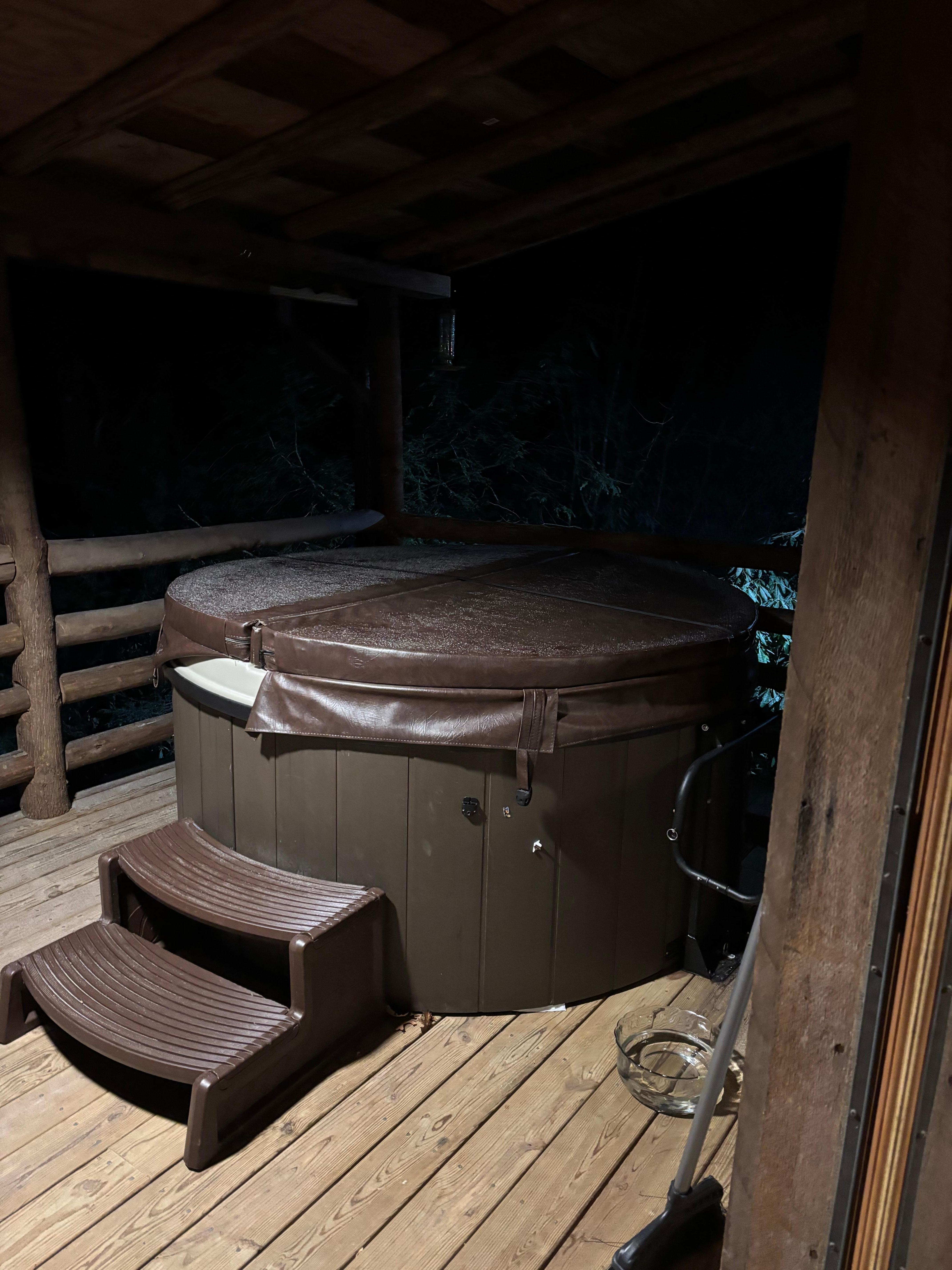 A charming two-level log cabin with two bedrooms and two bathrooms, At Last can accommodate up to five guests. There are exposed log walls and beams and hardwood floors throughout the home. The living room has a Smart TV and a stacked-rock wood-burning fireplace, making this cozy cabin a romantic getaway. Relax outside on the covered back porch and take in the serene wooded setting from the hot tub after a day on the golf course or the ski slopes. You can roast marshmallows and share stories at the fire pit below the house. The eat-in kitchen has new stainless steel appliances and granite countertops with plenty of space for preparing a favorite meal.