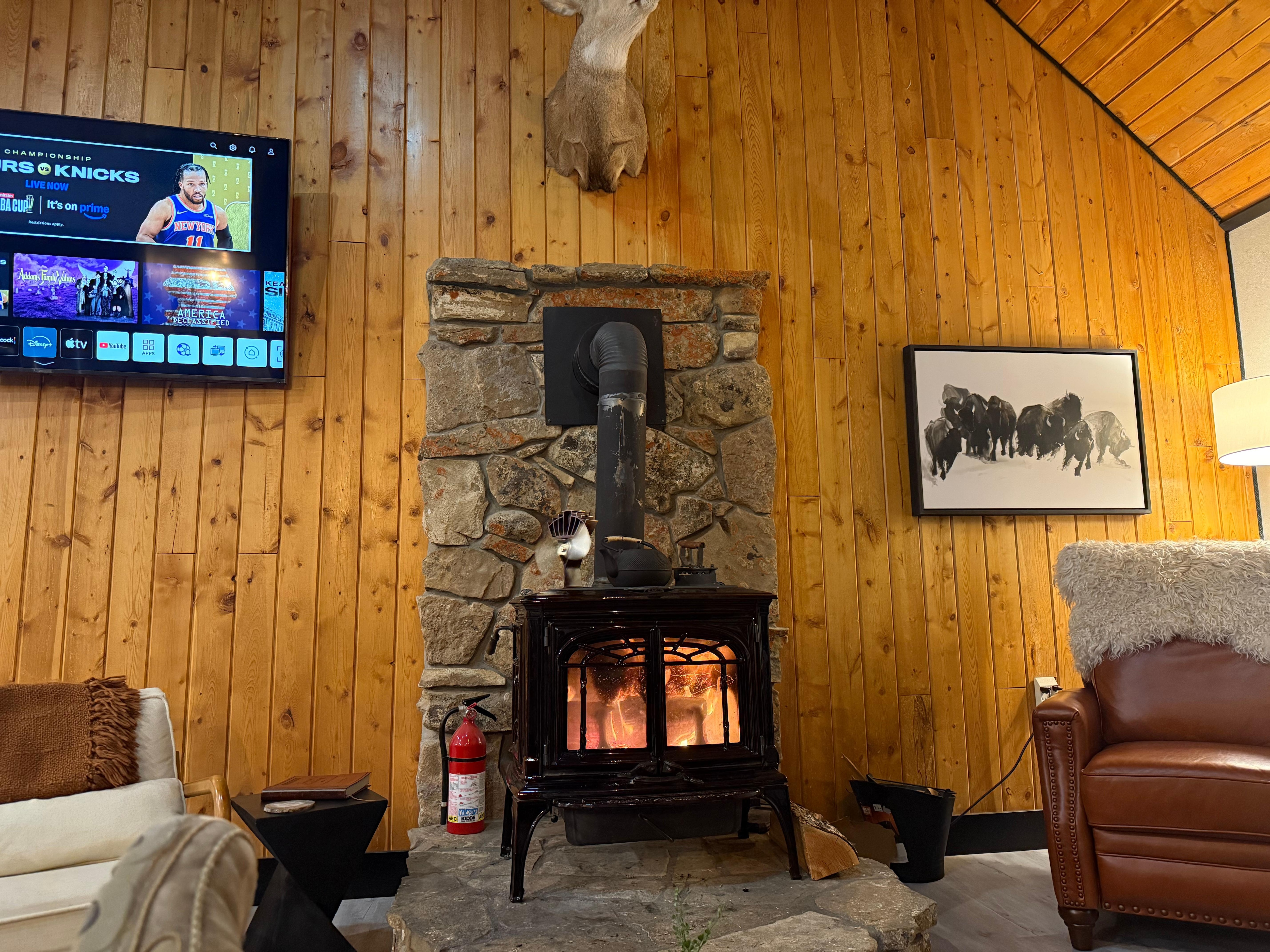 With beautiful views of the Southfork and the Buffalo Bill Reservoir, Cedar Mountain Retreat offers all the best of mountain modern living. The home features custom décor, furniture and modern upgrades that make it perfect for both adventure and relaxation. A newly The home features two levels of living space plus a detached game room with additional sleeping area. The main level of the home has an open living room with vaulted ceilings and wood stove. The dining room with panoramic views and ample seating with a custom built dining room table with banquet seating. Newly renovated kitchen with breakfast bar and new appliances.Down the hall are 2 bedrooms, one with a queen bed the other with a king bed. The main level bathroom features a jetted tub. A convenient washer and dryer are located in the hall across from the bathroom. Upstairs is the third bedroom with queen size bed and half bath. A large balcony for enjoying morning coffee or watching the sunset make this second level a wonderful retreat. The bonus detached game room features a smart tv, a fun nostalgic NFL Blitz arcade game and queen size murphy bed. All bedrooms have wall unit air conditioning for your comfort in the warmer months. Outdoors, the fenced patio area off of the dining room with a newly added hot tub, outdoor dining space and bbq grill. You can gather the family around the firepit (firewood is provided) for campfire tales and smores in the evening.