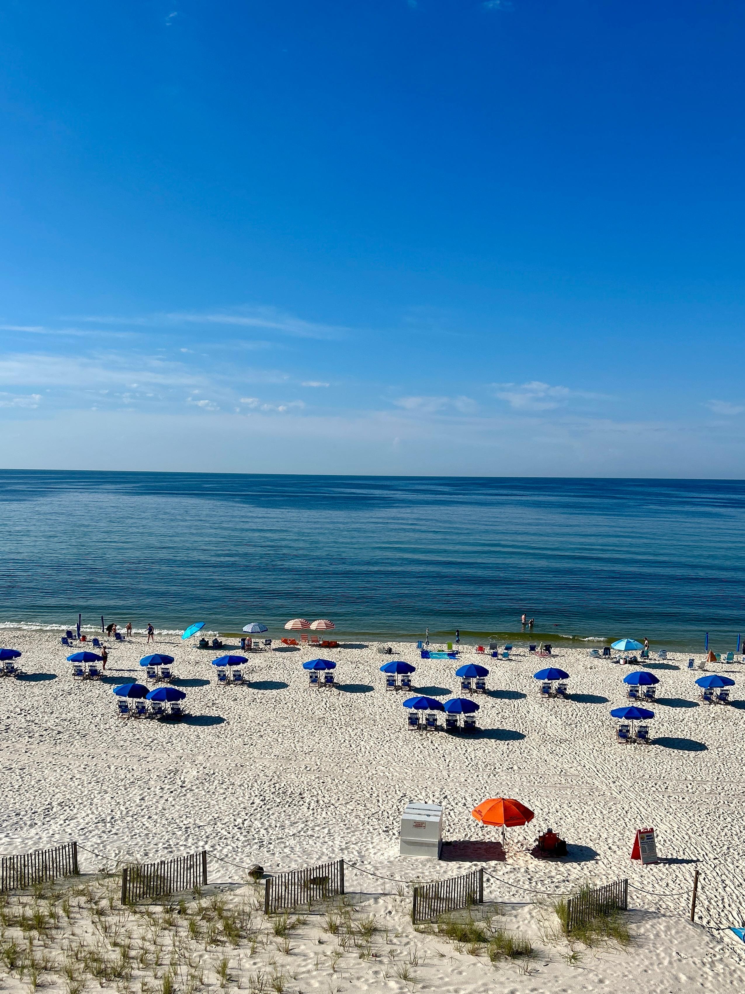 There's access to the gulf-front balcony from the living room and the master bedroom. The views from the kitchen are spectacular as well. When you're standing at the sink, it looks like you're actually directly ON the gulf…all you see if beautiful blue water! And, the living room has beautiful coastal furniture for your comfort. There's also complimentary Wi-Fi and a brand new smart TV in the living room for your enjoyment!