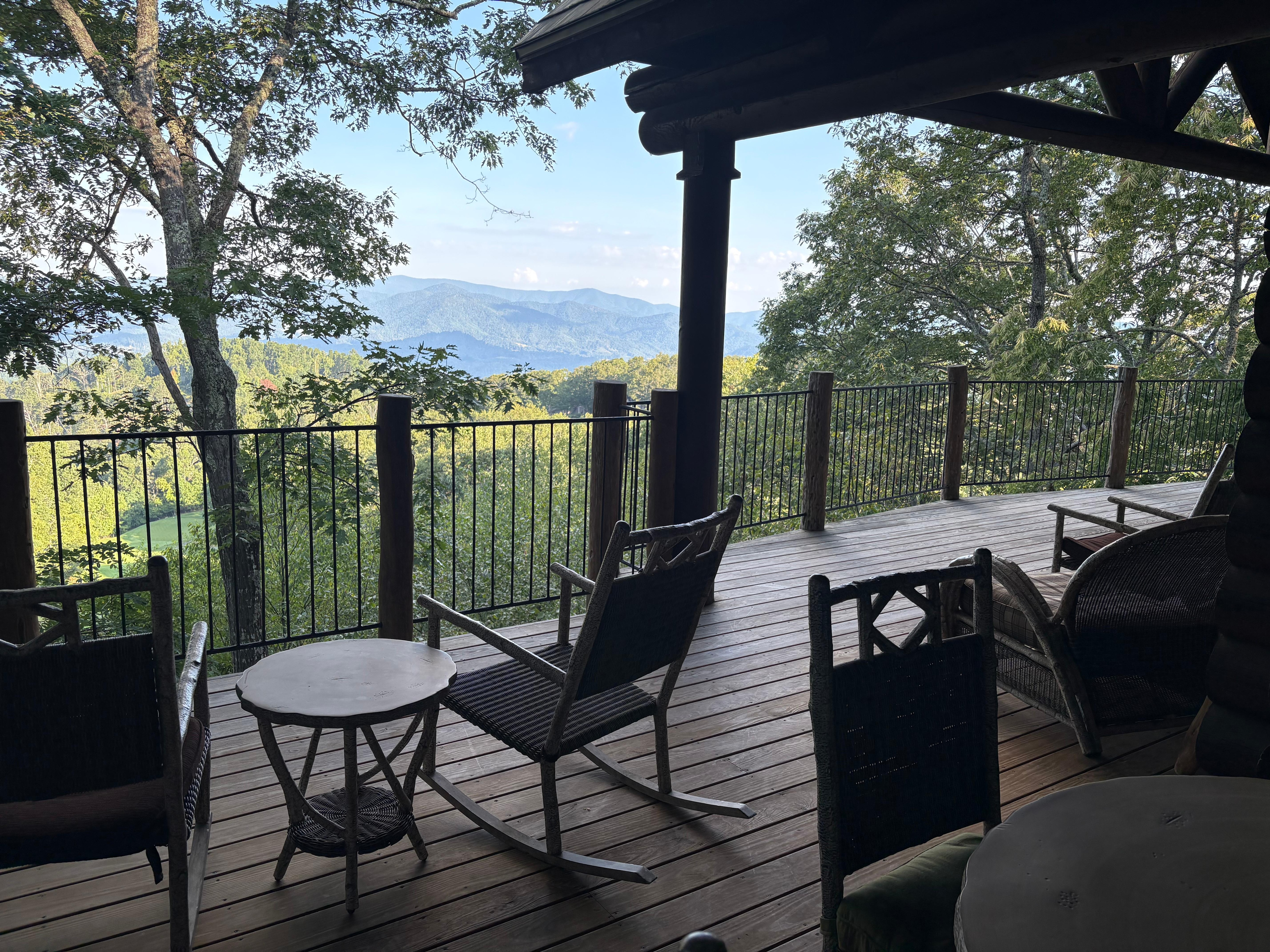 Log Home. 5B/4.5ba (4 ensuite/3 king) Long range mountain views. Pool table, foosball, & multiple levels to stream movies or relax with puzzles, games, & books provided! Enjoy comfy seating & outdoor kitchen on main deck or relax in hammock on deck below. Fully stocked gourmet kitchen. Guests receive access to Mountain Air Country Club:year-round amenities including private aircraft landing strip, golf, racquet sports, hiking, parks, gym, spa, pool, and two on-site restaurants. NO PETS