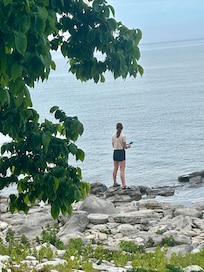 Recently renovated, Thimbleberry Castle House provides a unique space for family and group gatherings. Situated within an easy walk to great trails , this secluded location offers walks along the Lake Michigan beach and on wooded paths. The lakefront is definitely beautiful and no doubt better for viewing than swimming on the rocky beach. There are two sandy beaches within two miles of our property - in Baileys Harbor and in Jacksonport -and there are others spread throughout the county. Pets ok.
