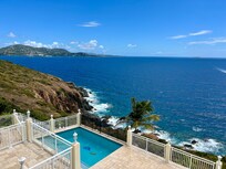 As you step into the villa, you are greeted by panoramic vistas of the four Saints islands, providing a captivating backdrop from every corner of the residence. The spacious living areas seamlessly flow into the outdoor oasis, where a private pool awaits, inviting you to cool off and soak up the Caribbean sun. Adjacent to the pool, a hammock and a jacuzzi offer moments of pure relaxation, allowing you to unwind while savoring the gentle sea breeze. Gaze out over the azure waters, and, with luck on your side, catch glimpses' of majestic whale migrations!