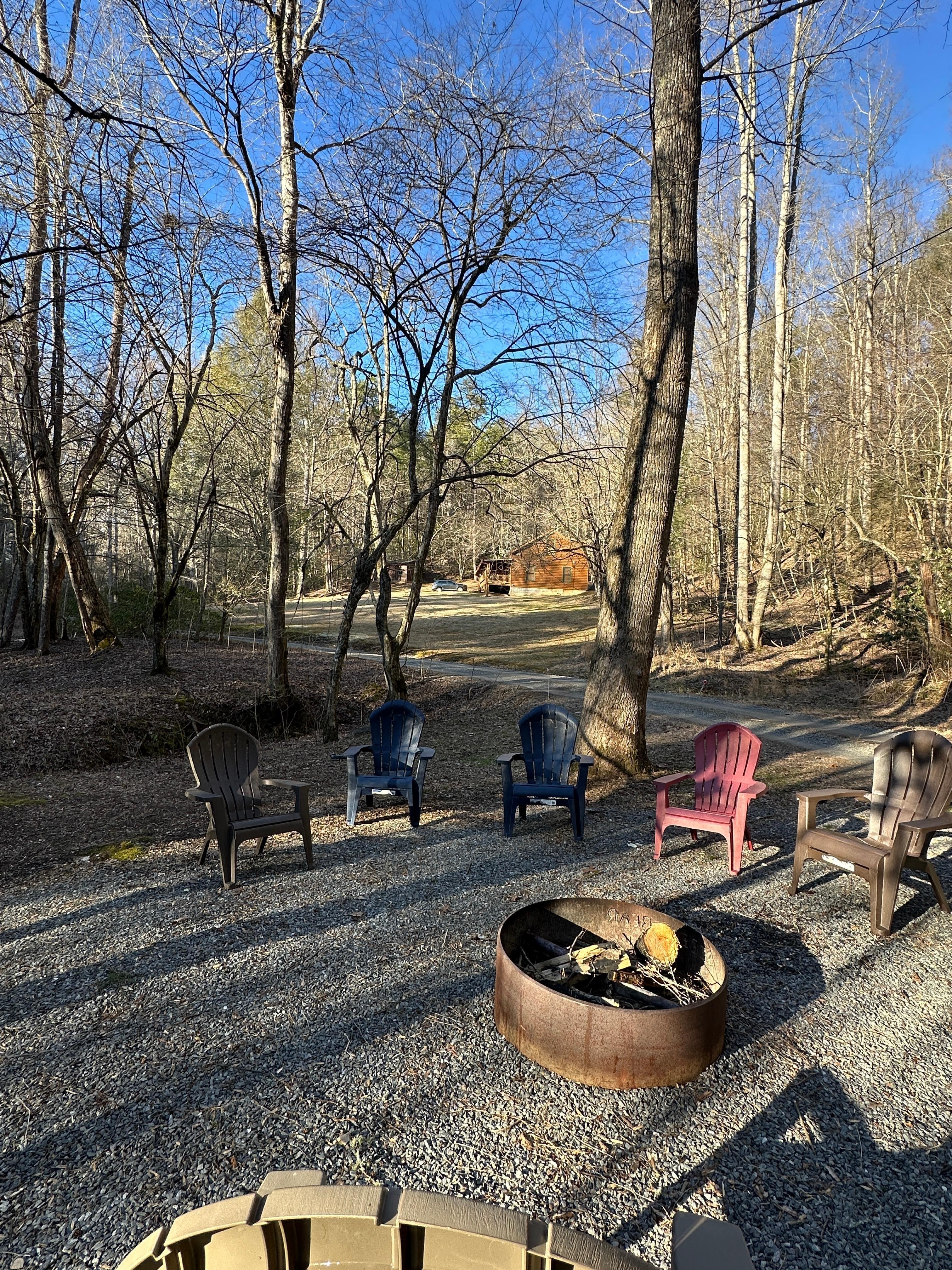 Fire pit next to river steps away from the front door! The most unique aspect!
