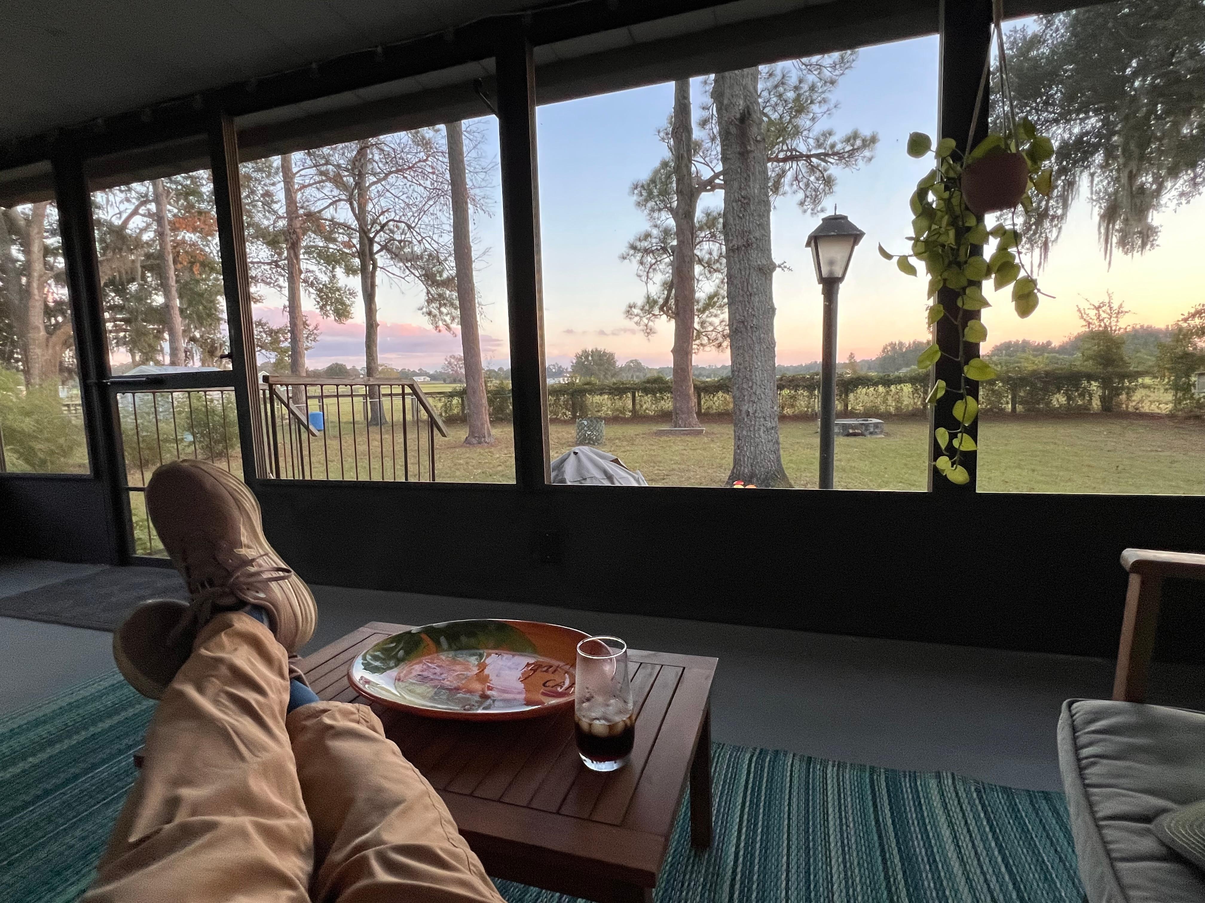 Kick back and relax in this calm, stylish space. Both bedrooms have a TV and dedicated workspace for remote workers. The kitchen is stocked with all the comforts of home. Coffee maker, kettle, microwave and toaster. Large shower with fast hot water, no bath. Large screened in back porch with patio furniture and Grille overlooking scenic pastures and fields. Off road parking and carport. Close to 75, 15 minutes to Downtown and 30 minutes to Gainesville. WEC is 5 minutes down the road.