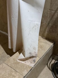 Not located where communicated. Very hot throughout the day. Moldy shower curtain. Toilet lid off track. No fire detector. Blankets of dust on ceiling fan. Microwave didn’t work. Stains on chair at desk.