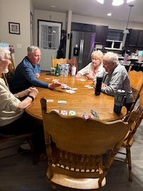 The upper and lower living rooms have plenty of comfortable seating capacity so that large groups/families can spread out and enjoy the two 65" Smart VIZIO HDTV's that are supported by the highest speed WIFI available in the area. We've also got a full size foosball table and several board and card games and a large table to play with them.