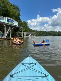We have provided plenty of games( giant Jenga, cornhole, giant Connect 4,) kayaks, a pool, a cabana and bar, a grill area, a firepit, double decker dock, and tons of private outdoor spaces to relax and a mural that is sure to make your stay memorable.
