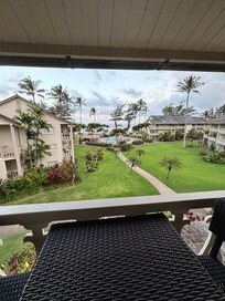 ✔️ Private lanai with breathtaking ocean, garden, and pool views