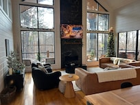 The first floor master bedroom provides guests with a luxuriously comfortable king-sized beds, topped with a super comfy mattress. It’s so cozy, you may have trouble getting out of bed in the morning! The ensuite extra large bathroom comes with a separate tub & shower and dual vanity sinks. Not only will you be able to enjoy your favorite TV shows on the 55" smart TV, but also the breathtaking views through the exceptionally large windows. Bring nature indoors by sliding open the doors to walk out onto a private deck area. In the mornings, step through the back doors to enjoy alone time and a warm cup of coffee on the back patio before everyone else wakes up.