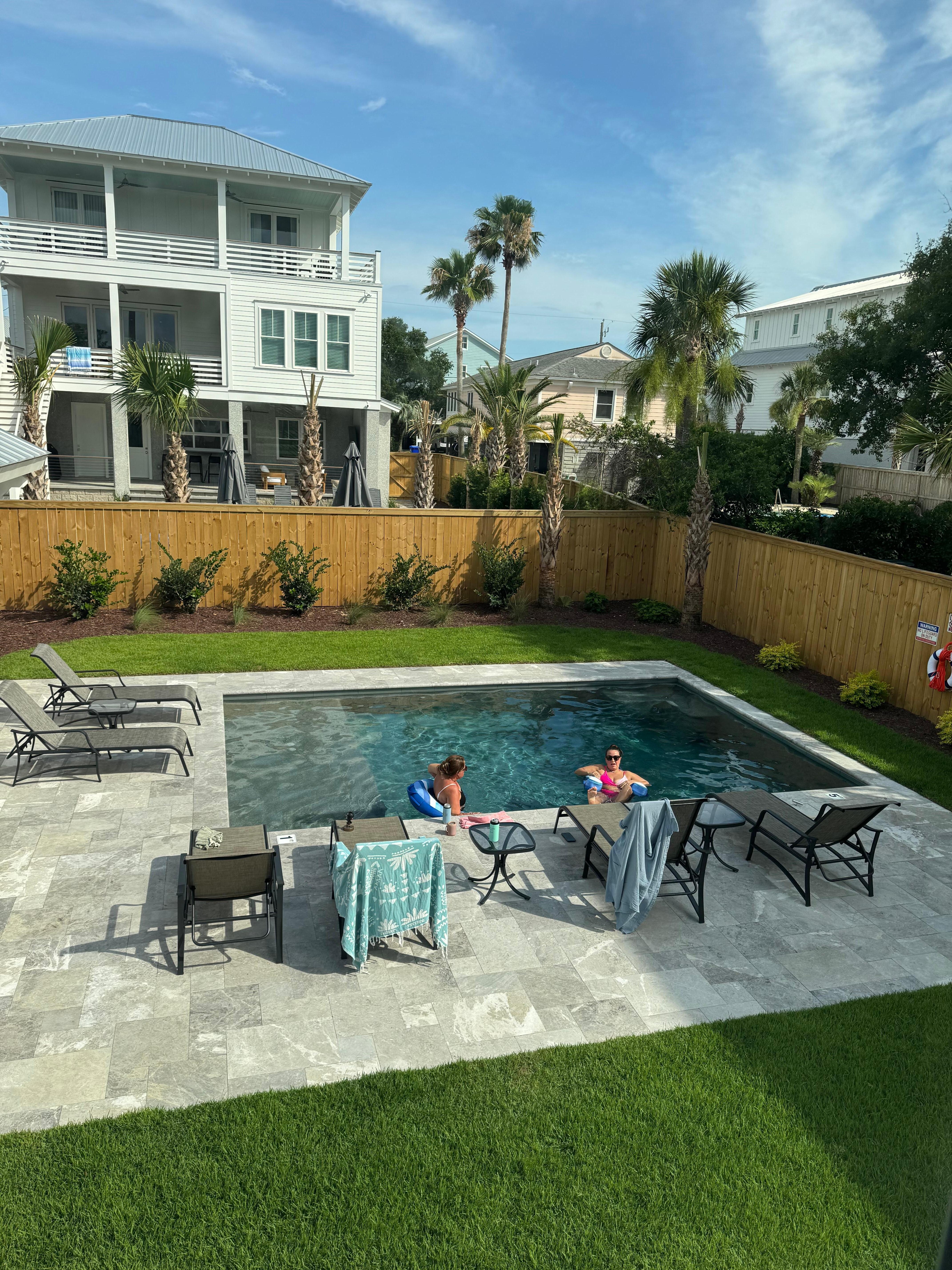 Check out this amazing completely renovated beach home on the beautiful Isle of Palms. The renovation is just wrapping up and the home is brand new inside and out! The backyard is a peaceful oasis with a saltwater pool and beautifully landscaped yard. This house offers a warm and inviting atmosphere for guests and is within walking distance to the beach(beach is 2 blocks away) and many restaurants and shops. There are 4 bedrooms and 3 1/2 baths. The top level has a fully stocked kitchen with 2bedrooms- each with a queen bed, den, dining area and two bathrooms.