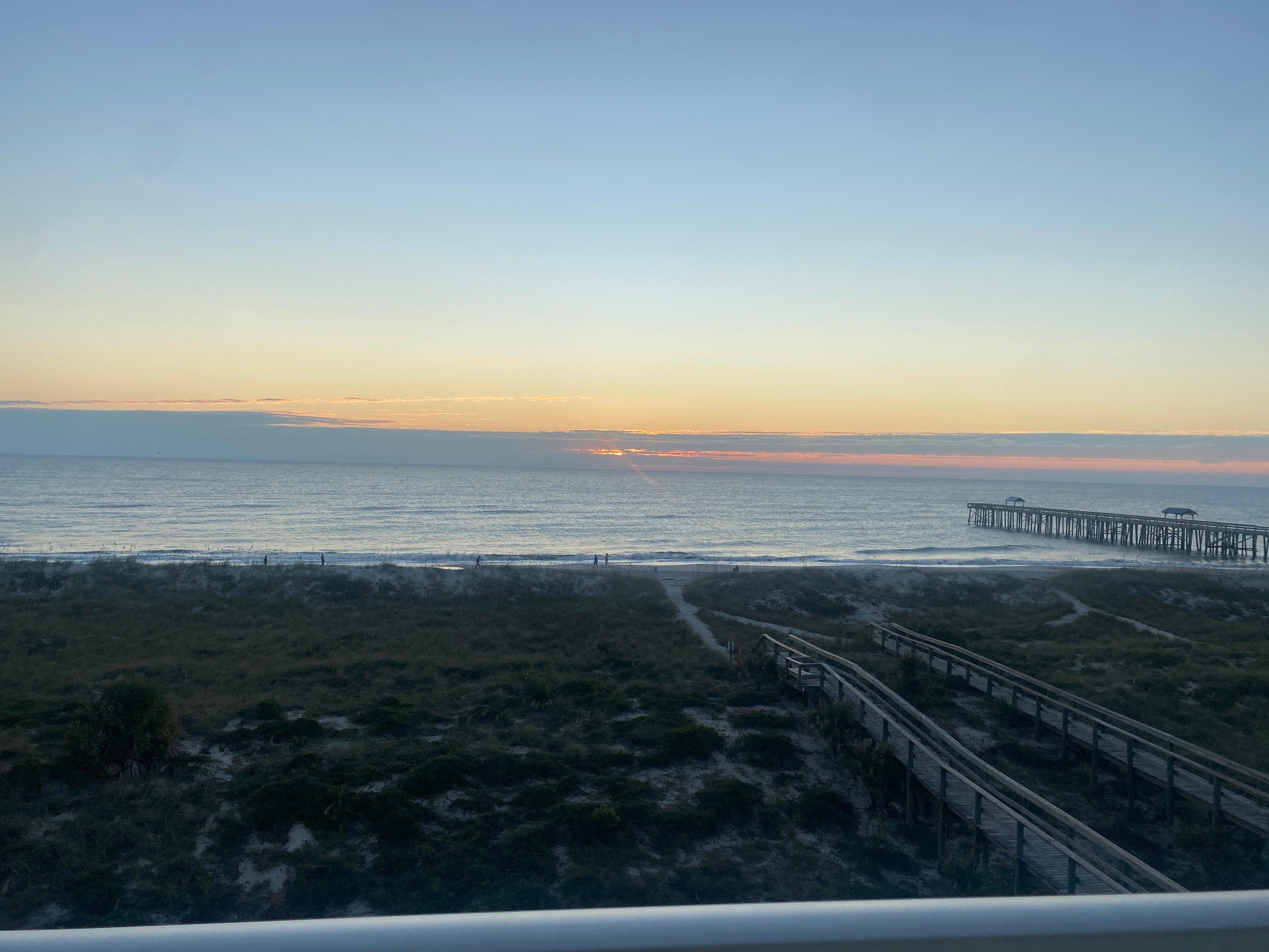 Beautiful view of the beach for all weather. We had it all, stormy waves, snow flakes and warm sun. The pelicans and dolphins were a bonus to watch