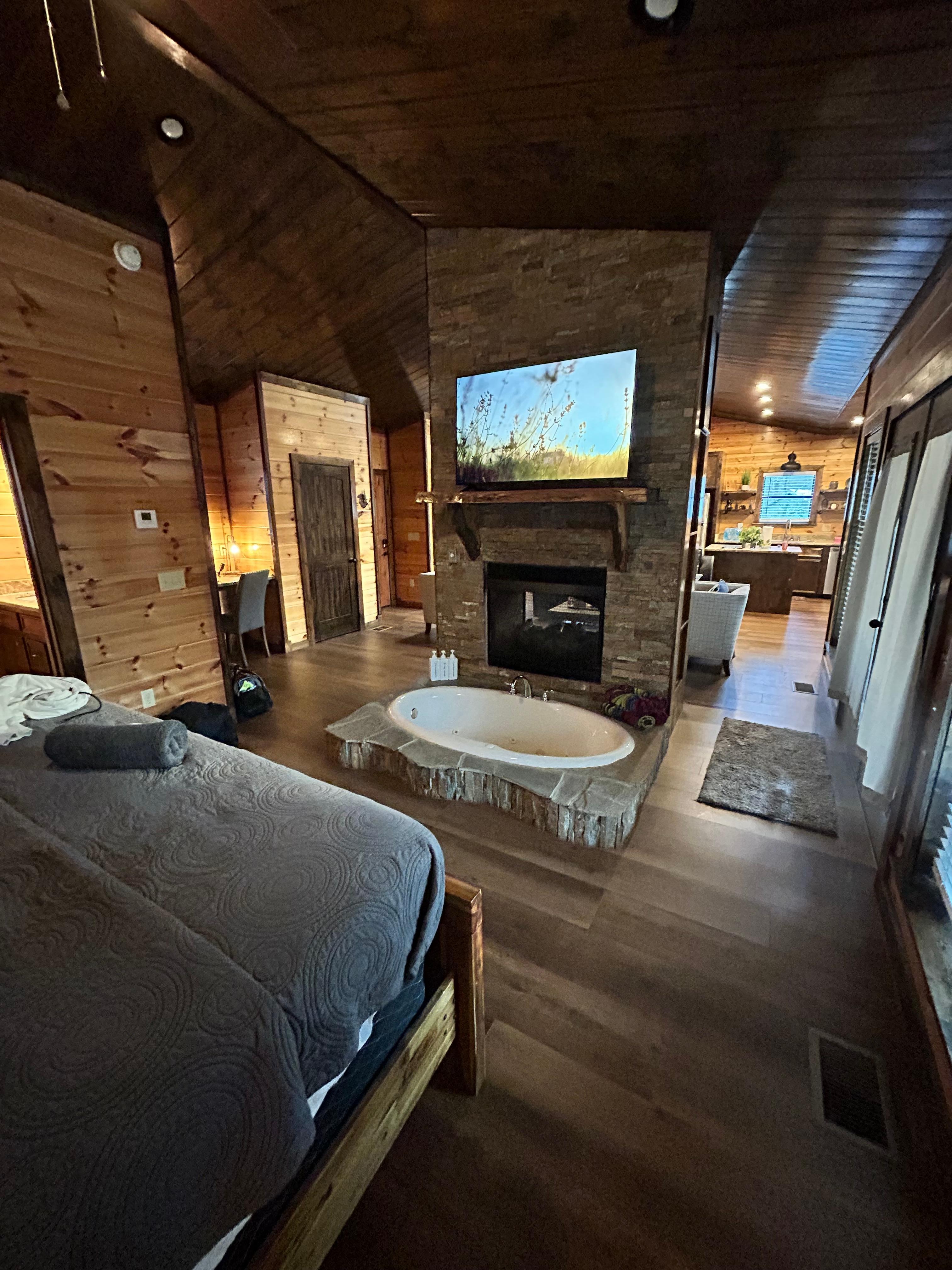 Photo gallery for Stonewall Cabin · Lovers' Paradise: Intimate Cabin with Soak-In Tub