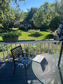 Bedroom opens via sliding glass doors to a deck and the yard is full of flowers,birds, and butterflies...very relaxing .... Perfect for afternoon tea!