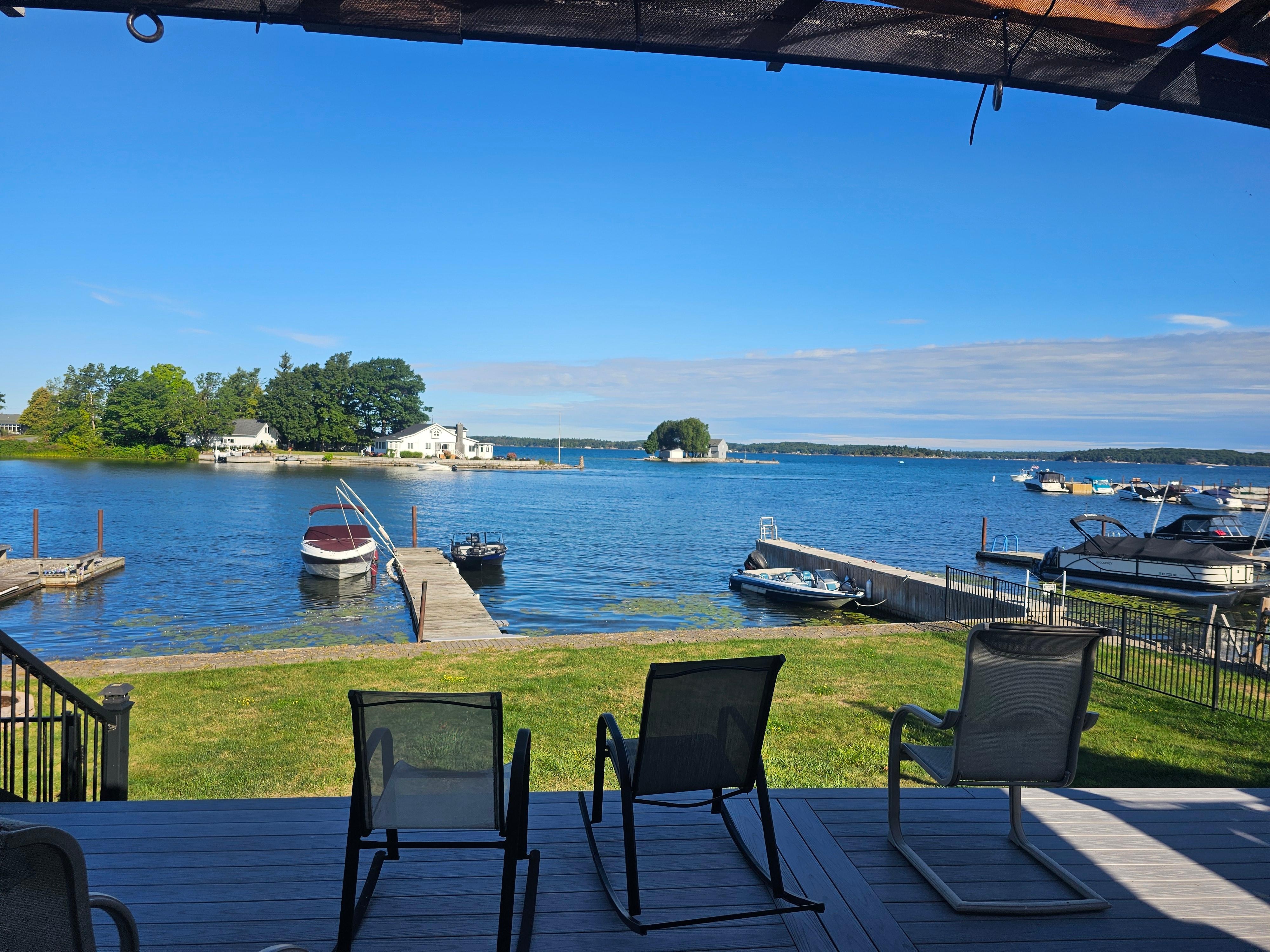 Long dock to keep your boat or boat rental. Two boat launches literally a few hundred feet away! In a bay and with channel views to see the big ships! You can refresh with a swim from the dock which has a ladder to get in and out.