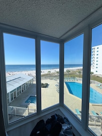 Relax and enjoy the experience of the hot sun, white sand and clear waters of the Gulf of Mexico. The view allows the greatest beginning and end to any day from watching the dolphins at sunrise to the most beautiful sunsets to end a perfect day. Please note they’re painting the building in the spring 2025