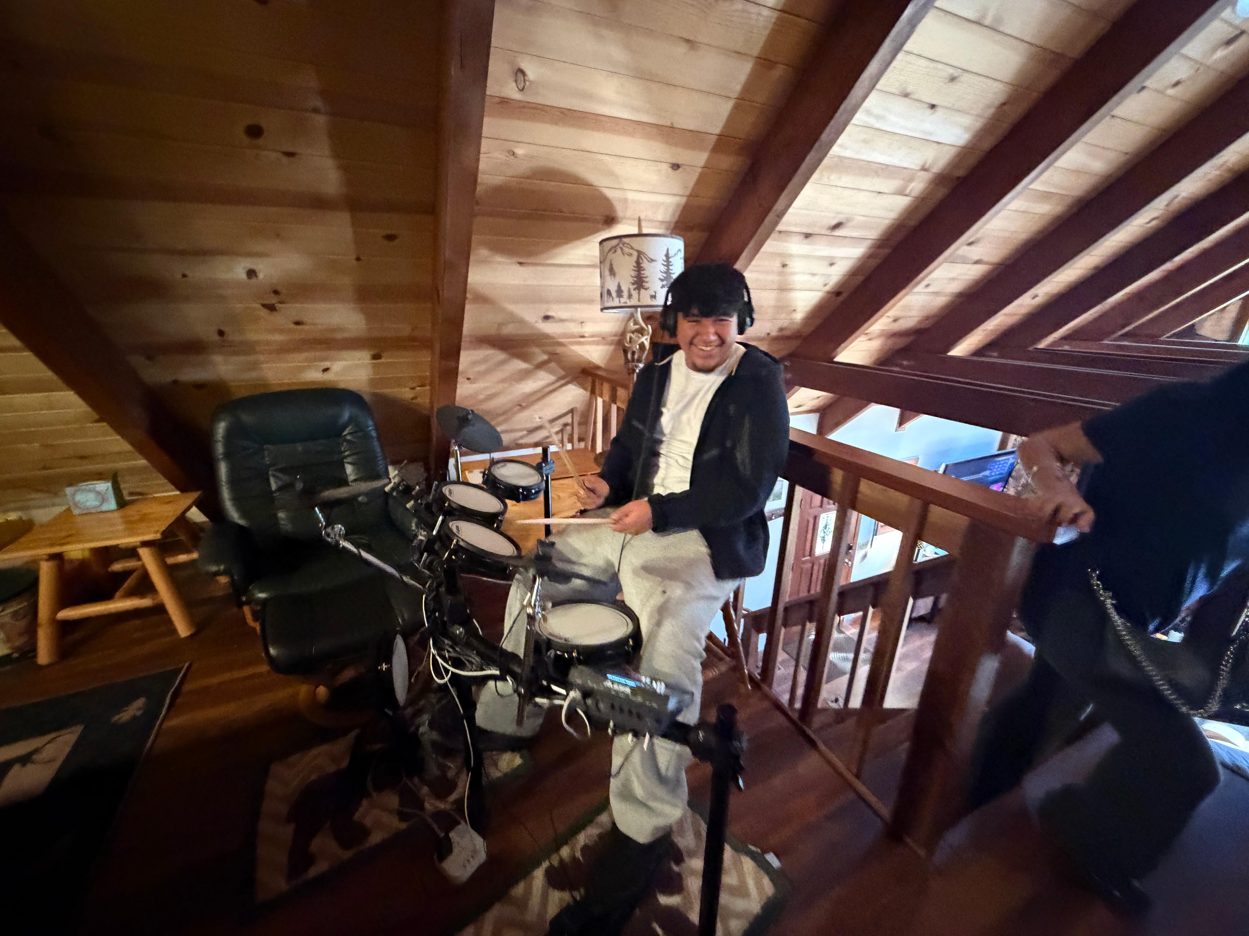 My brother and our nephew stayed at Dave’s Den for two nights and had a wonderful time. The cabin is in excellent condition and well furnished. Our main goal was to visit nearby Union reservoir and we could not find a decent map on-line. We were very pleased to find a map in the entry way that included the remote roads we needed to get there. The surrounding area is very scenic and peaceful. It was an absolute pleasure listening to the wind in the trees and having a drink while barbecuing. It’s too bad our younger brother had to bail out of the trip at the last minute. He was a drummer high school and would have enjoyed the very nice set of electronic drums in the loft next to the pool table. Anyway, if I ever return to the area, Dave’s Den will be my first choice for lodging. The photo shows my brother losing to me in a game of 8-ball.