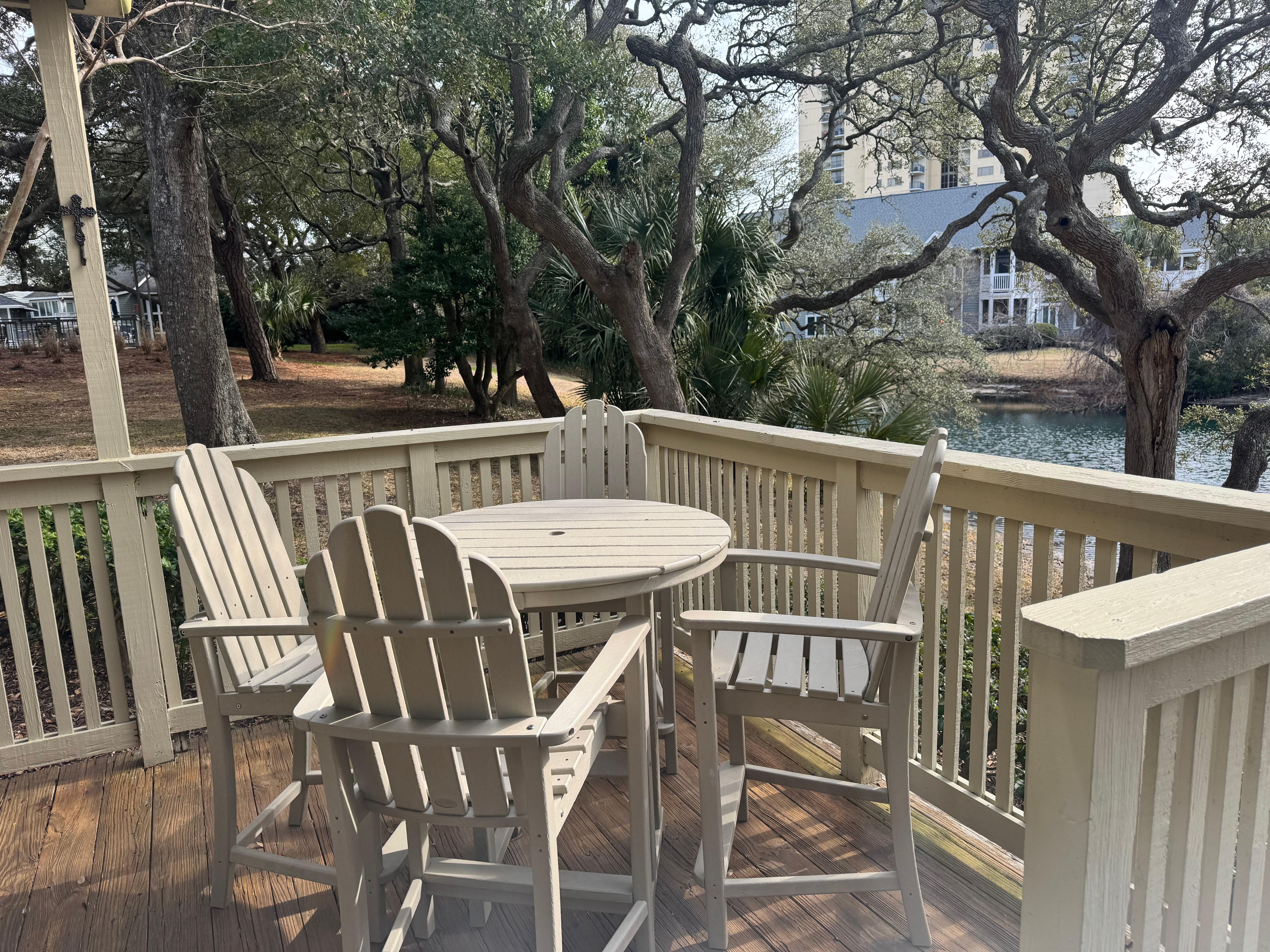 Our bathrooms have also been renovated providing perfect solace to the end of your busy vacation days while touring the Grand Strand! With waterfall shower heads, pebble tile flooring in the master bathroom, granite vanities and all new ceramic tile flooring...it is a sweet retreat during your stay in our home! On our spacious deck we now has 2 new Breeszesta rockers and a Polywood bar height table and 4 chairs for you to enjoy. The deck overlooks a beautiful small lake. Our home is a true must see and the perfect place for you and your family! So, don't miss out and spend your vacation with us!