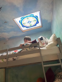 - Third Bedroom (Upper Level): A vibrant room equipped with a queen bed and a twin bunk bed, comfortably accommodating up to four guests.