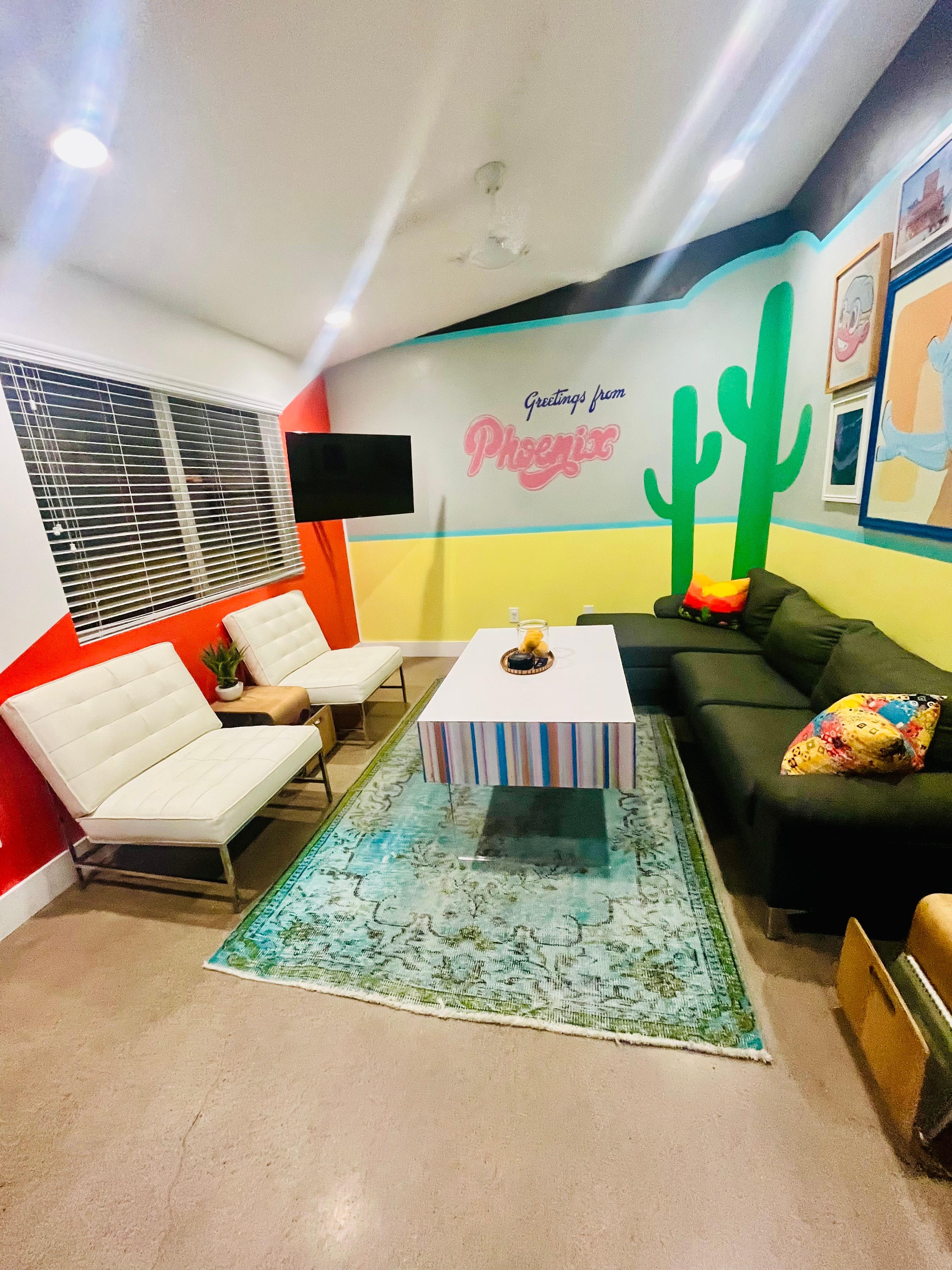 Introducing [The Deuce], where 2 homes on a shared half-acre lot in Central Phoenix come together to offer a unique and expansive accommodation experience. Perfect for larger groups of family, friends, or business travelers, [The Deuce] provides a total of 6 bedrooms and 4 bathrooms, complete with two fully-equipped kitchens, living, and dining rooms. Rated 4.95 and 4.97 stars respectively, these two homes offer an ideal retreat for those seeking both serenity and urban convenience.