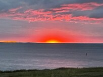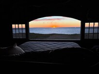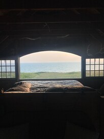 No matter how crowded it gets in the summer on Block Island, it's always peaceful at Schooner Point. The barn is waterfront and there is a giant window overlooking the ocean. The main king size bed is built up directly in front of that window. There are large barn doors which, when open, have a beautiful view of the Audubon property.