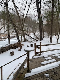 The perfect vacation; do as much or as little as you want! Relax in the quiet of the woods on the large deck overlooking Sleepy Creek Cabin or on the creek side hammock. Shop or dine in the quaint town of Berkeley Springs, hike the trails or C&O canal, fish, swim or boat the Potomac River or Sleepy Creek lake, or partake in the world famous spas and warm springs.